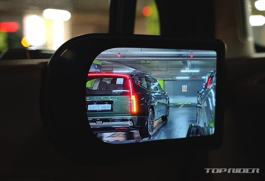 최소회전반경은 늘어난 휠베이스를 고려하면 상당히 개선됐습니다. 별도의 장비가 추가되지 않았지만 조타각을 늘리는 방식을 사용한 것으로 보여집니다. 적어도 후진주차 시 이상한 궤적을 그리지는 않습니다. 디지털 사이드미러의 돌출된 크기를 비약적으로 줄여 주차 시에도 접히지 않는 방식입니다.