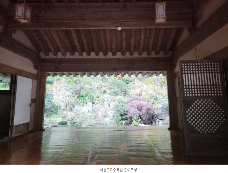 삼시 한옥 마루에 앉아 사진을 찍고 아침고요수목원 주변을 바라보며 멍때리는 시간을 가져도 좋습니다.