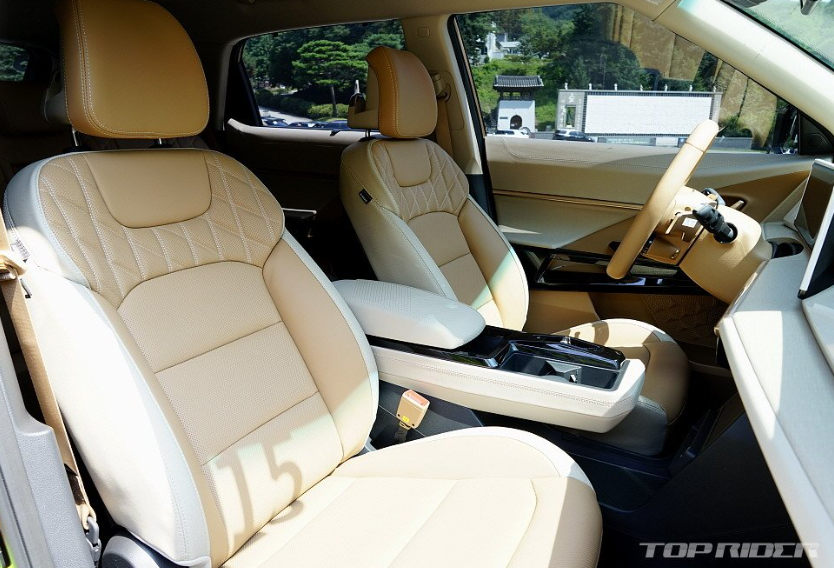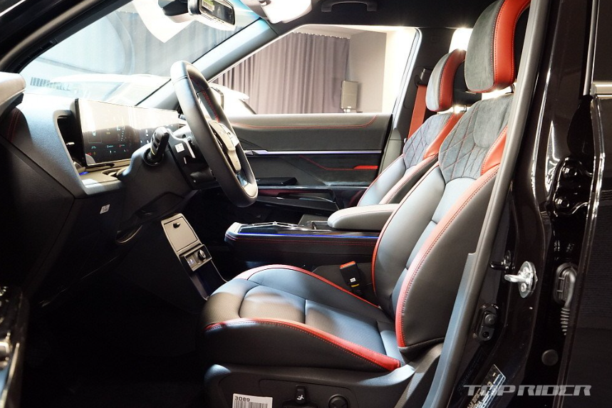 실내는 토레스 EVX를 통해 선보인 디자인을 기반으로, 디스플레이 인터페이스 개선과 함께 카멜&베이지 투톤, 블랙&레드 투톤을 적용하며 고급감을 높였습니다. 가죽과 우레탄, 플라스틱 등 다른 소재 간의 컬러 톤을 맞추는 것이 쉽지 않은데, 3천만 원대에서는 가장 뛰어난 편이라고 합니다.