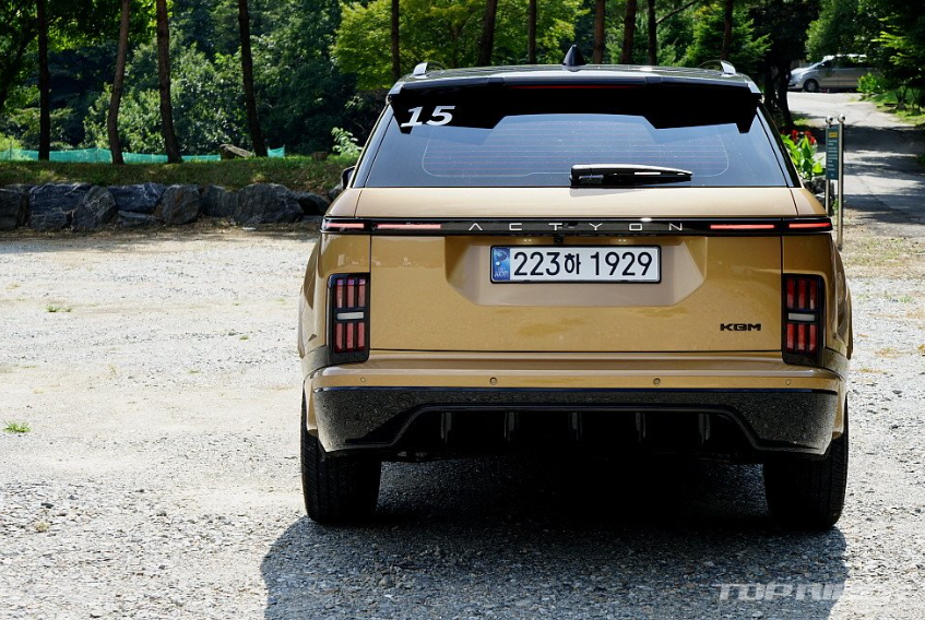 후면부는 액티언 디자인의 백미입니다. 레인지로버 벨라 디자인과의 유사성을 차지한다면 국산 SUV 중에서 손꼽히는 디자인입니다. 토레스 대비 전고를 낮추면서 낮고 와이드 한 프로포션을 확보, 동급 경쟁차와는 달리 강인한 분위기가 강조됐다고 합니다. 타이어는 KGM 최초의 미쉐린입니다.