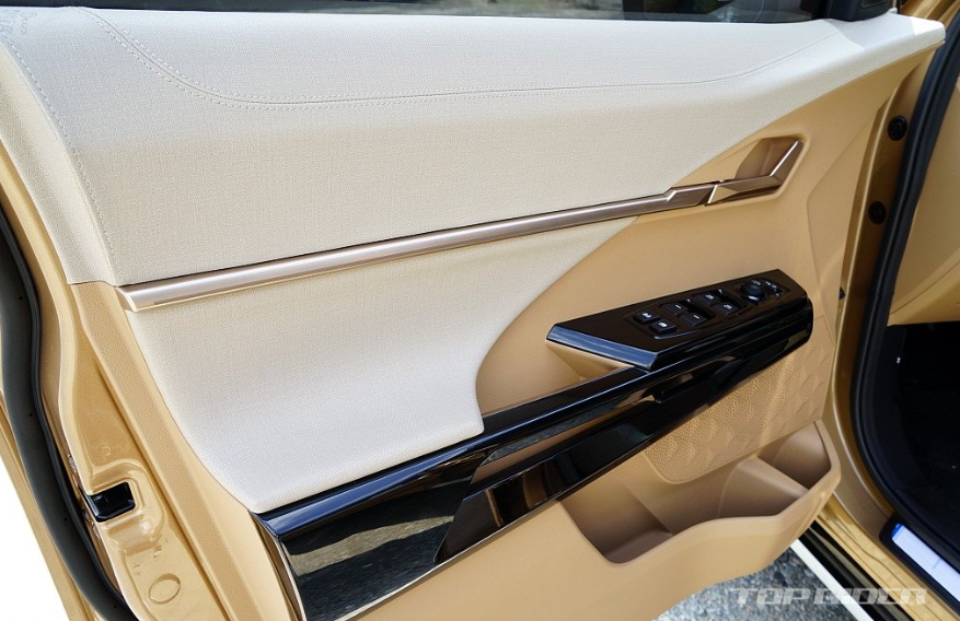 카멜 투톤 인테리어(40만 원)와 블랙 투톤 인테리어(60만 원)는 도어트림 상단부의 소재가 독특합니다. 인조가죽처럼 보이는데 쿠션감이 있어 고급스럽니다. 제네시스 브랜드의 시그니처 디자인 셀렉션처럼 가격대비 가치가 높은 옵션입니다. 구입 시 반드시 선택하는 것을 추천합니다.