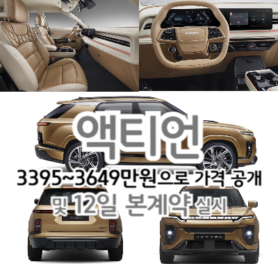 액티언 3395~3649만원으로 가격 공개 및 12일 본계약 실시