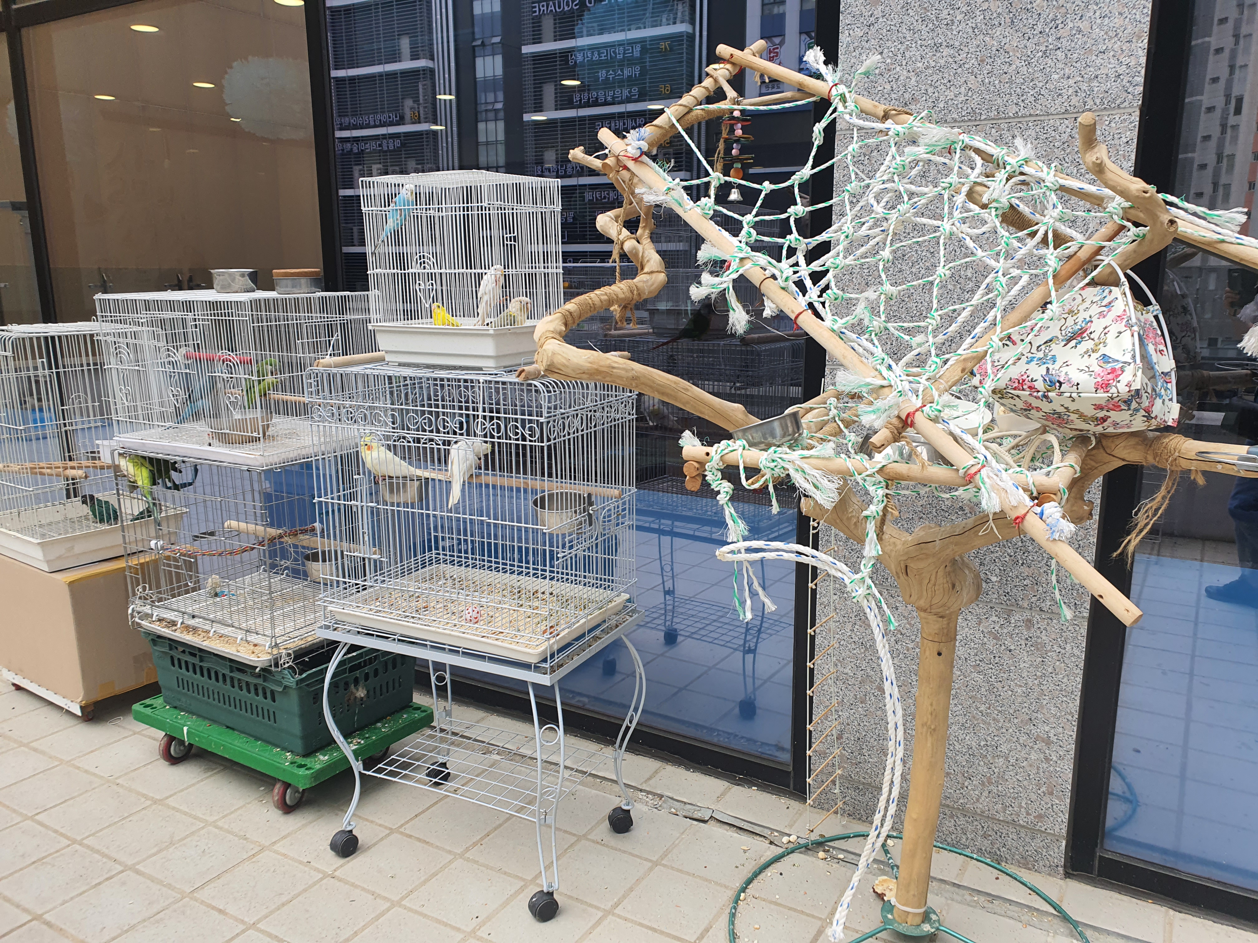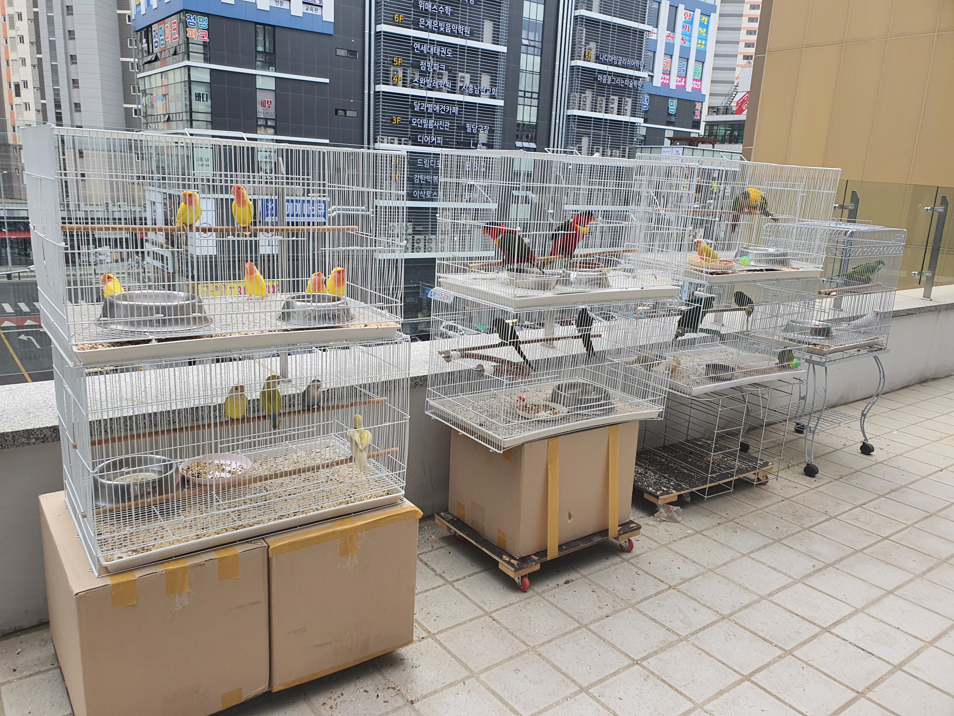 그 두마리는 사장님네 가족이 키우는 앵무새라고 하더라구요