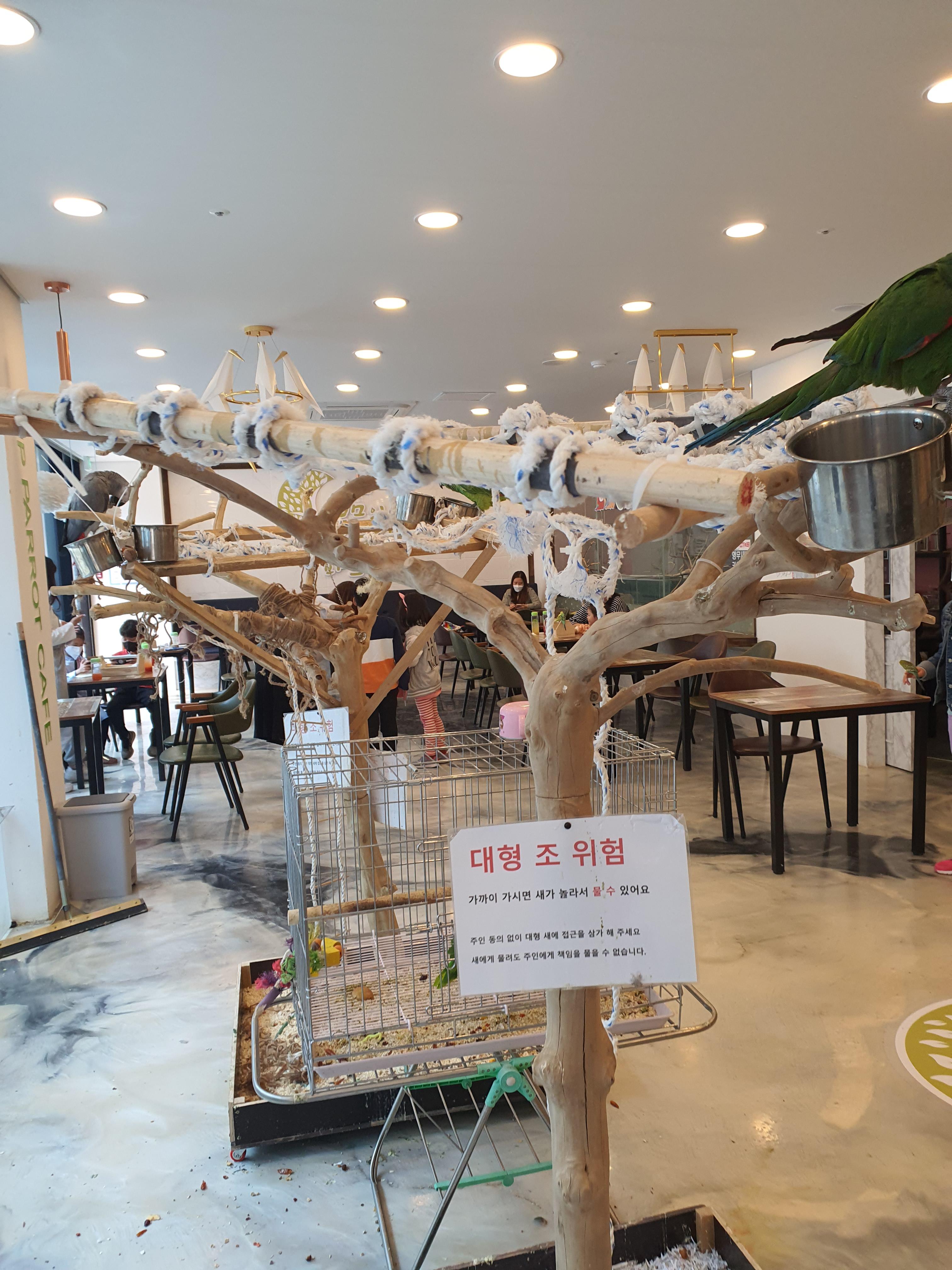 카페 안쪽에 밖으로 연결된 공간에 앵무새들이 무척 많이 있습니다.