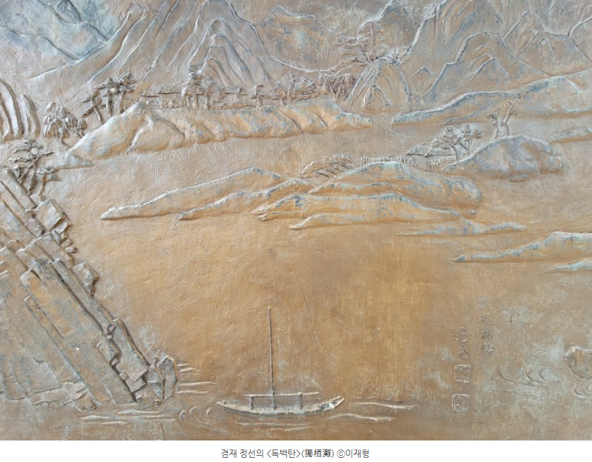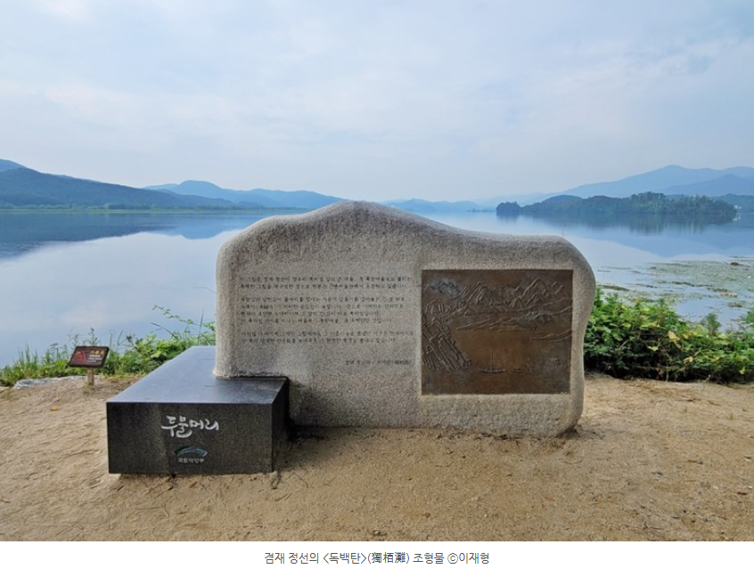 소원나무 뒤에 화강암으로 만든 조형물이 있습니다. 이 조형물은 겸재 정선의 '독백탄' 그림과 해설이 적혀 있는 조형물 입니다.