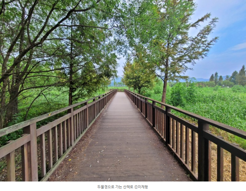 두물머리 탐방로에서 두물경으로 갑니다. 두물경으로 가는 길은 산책로가 잘 되어 있습니다. 메타세쿼이아 나무도 많이 심어 있습니다. 여름에는 좀 덥겠지만, 가을에는 가족, 연인, 친구 등과 함께 손잡고 걷기 좋은 길입니다.