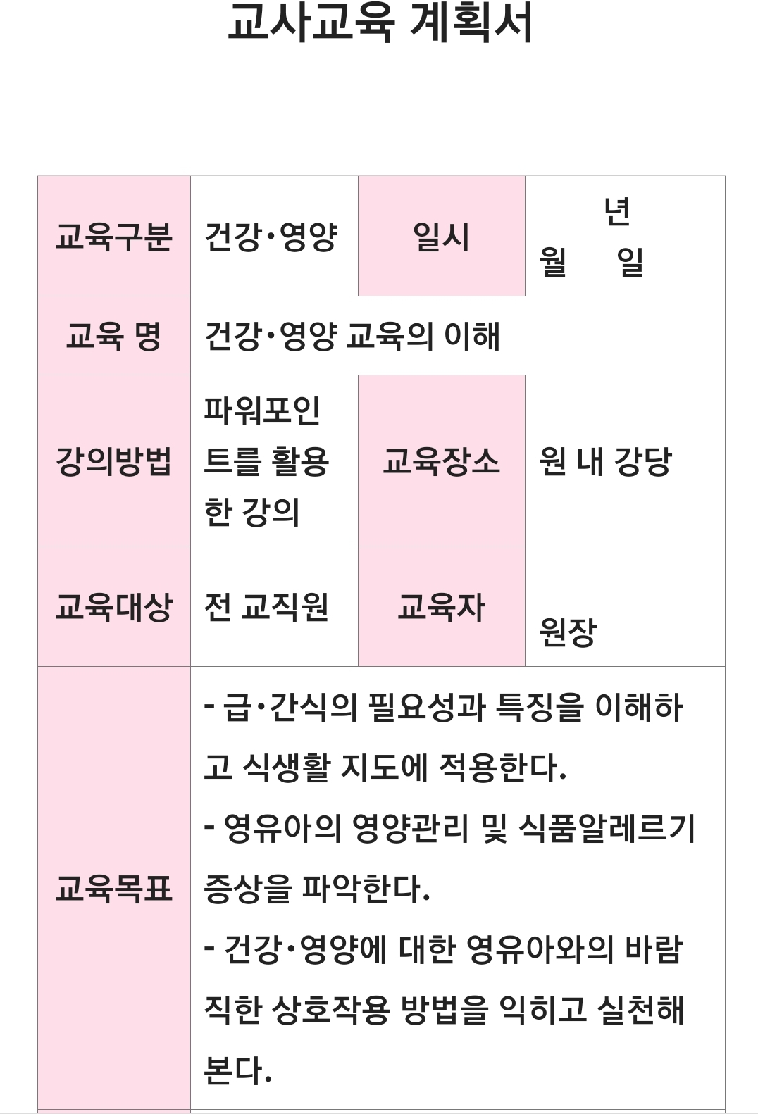 연간 교사교육 계획안