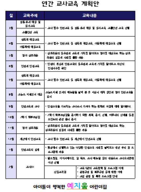 연간 교사교육 계획안