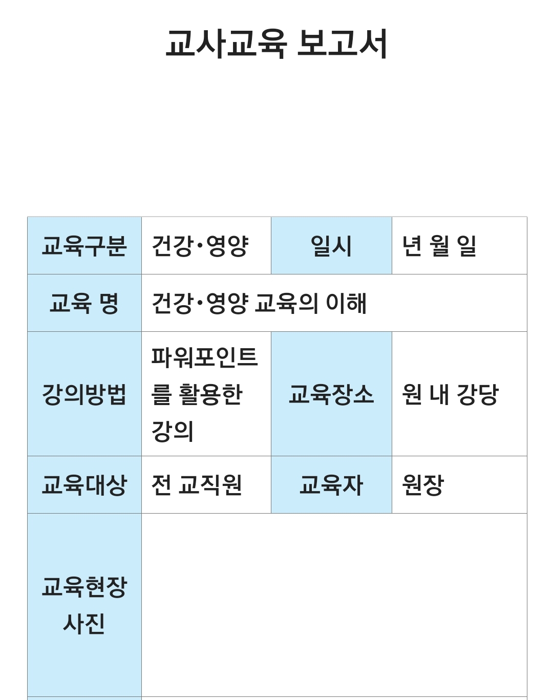 어린이집 교사교육 계획서 교사교육 보고서 연간 교사교육 계획안 등 교사교육 관련서류
