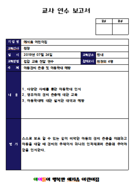 오늘은 어린이집 교사교육 관련 서류를 올려보려고 합니다.