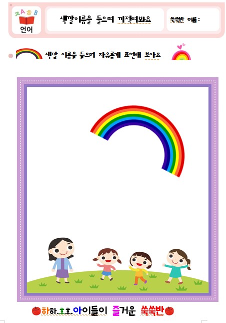 1. 무지개의 다양한 색깔을, 보고 색깔 이름을 알아본다.