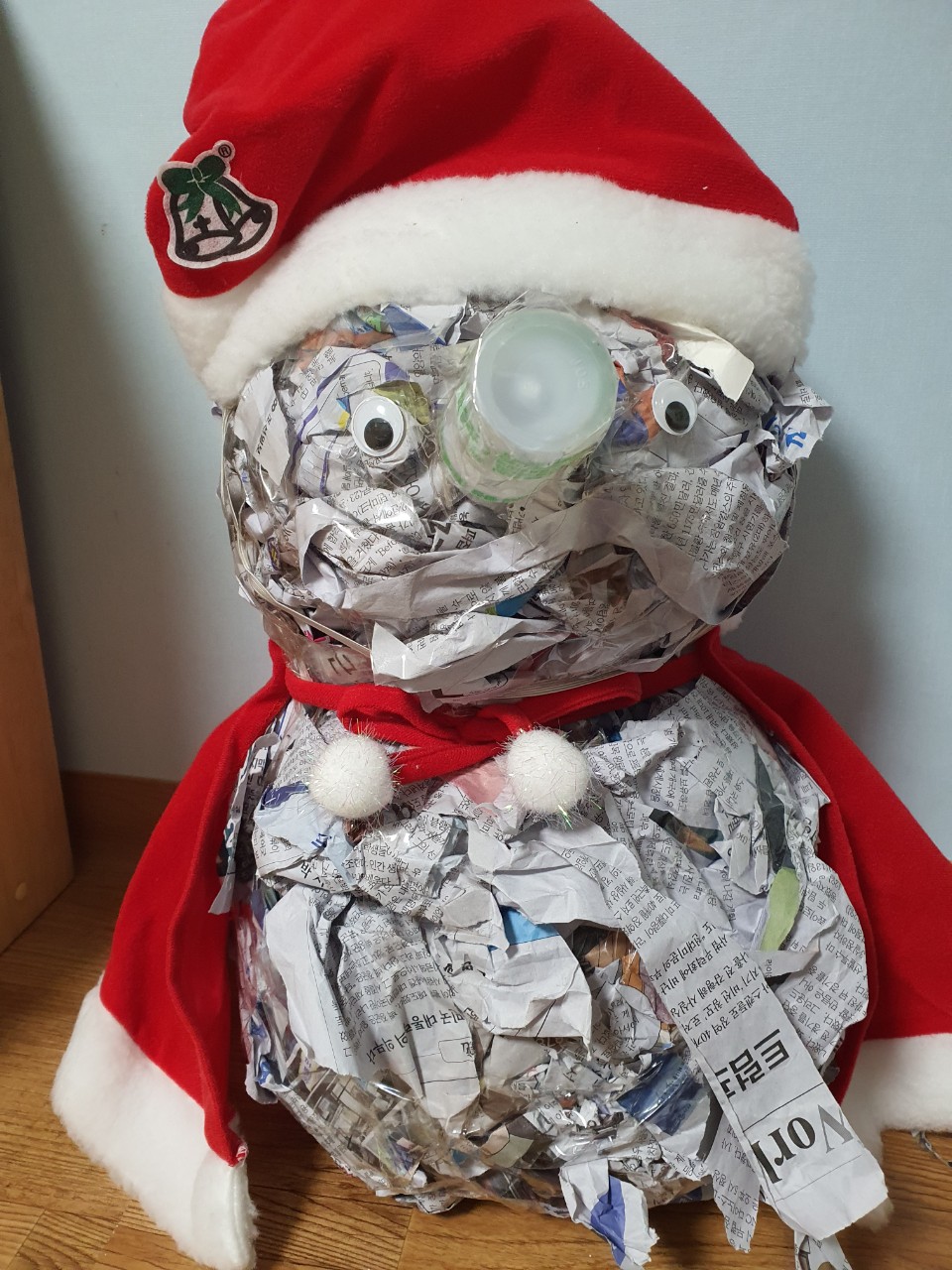 커다란 봉지에 신문지 눈 뭉치를 담아 눈사람을 만들어본다.