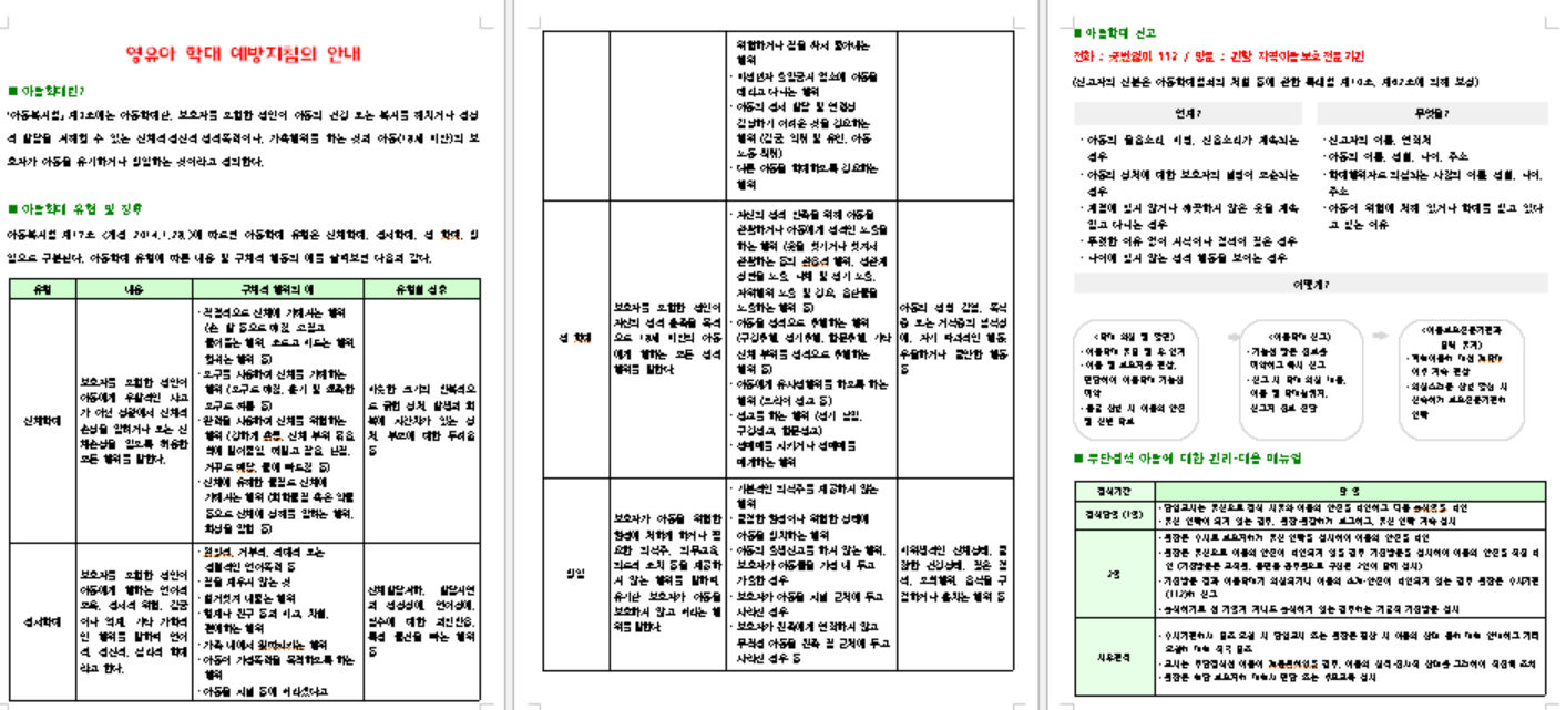 영유아 학대 예방지침의 안내