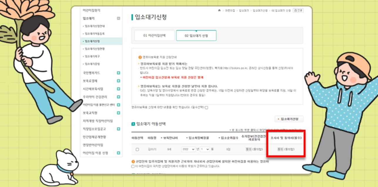 3. 입소 대기 아동 선택 조사서 및 동의서 선택