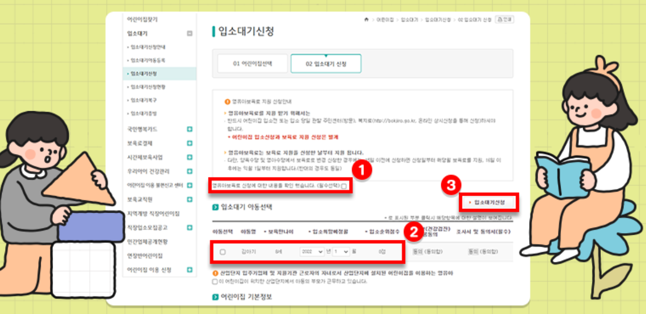 어린이집 입소 대기 신청은?