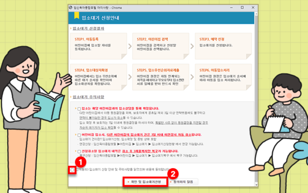 ② 확인 및 입소 대기 신청 버튼을 클릭합니다.