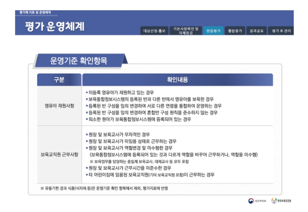어린이집 운영기준 확인항목