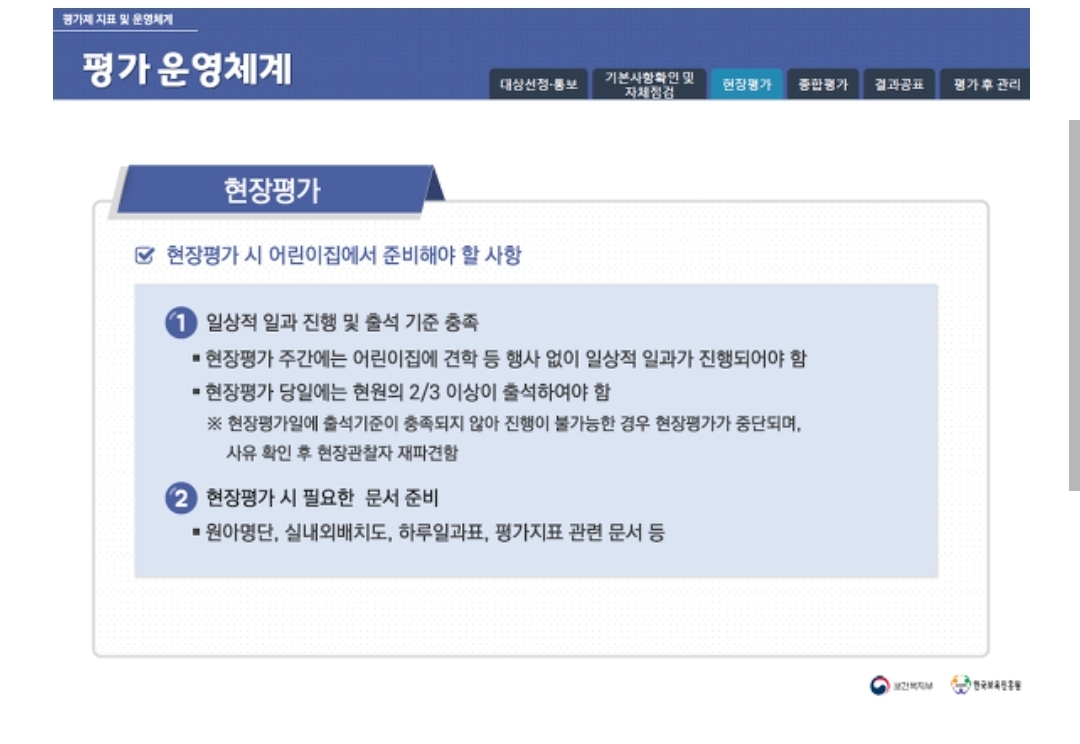 현장평가 시 어린이집에서 준비해야 할 사항