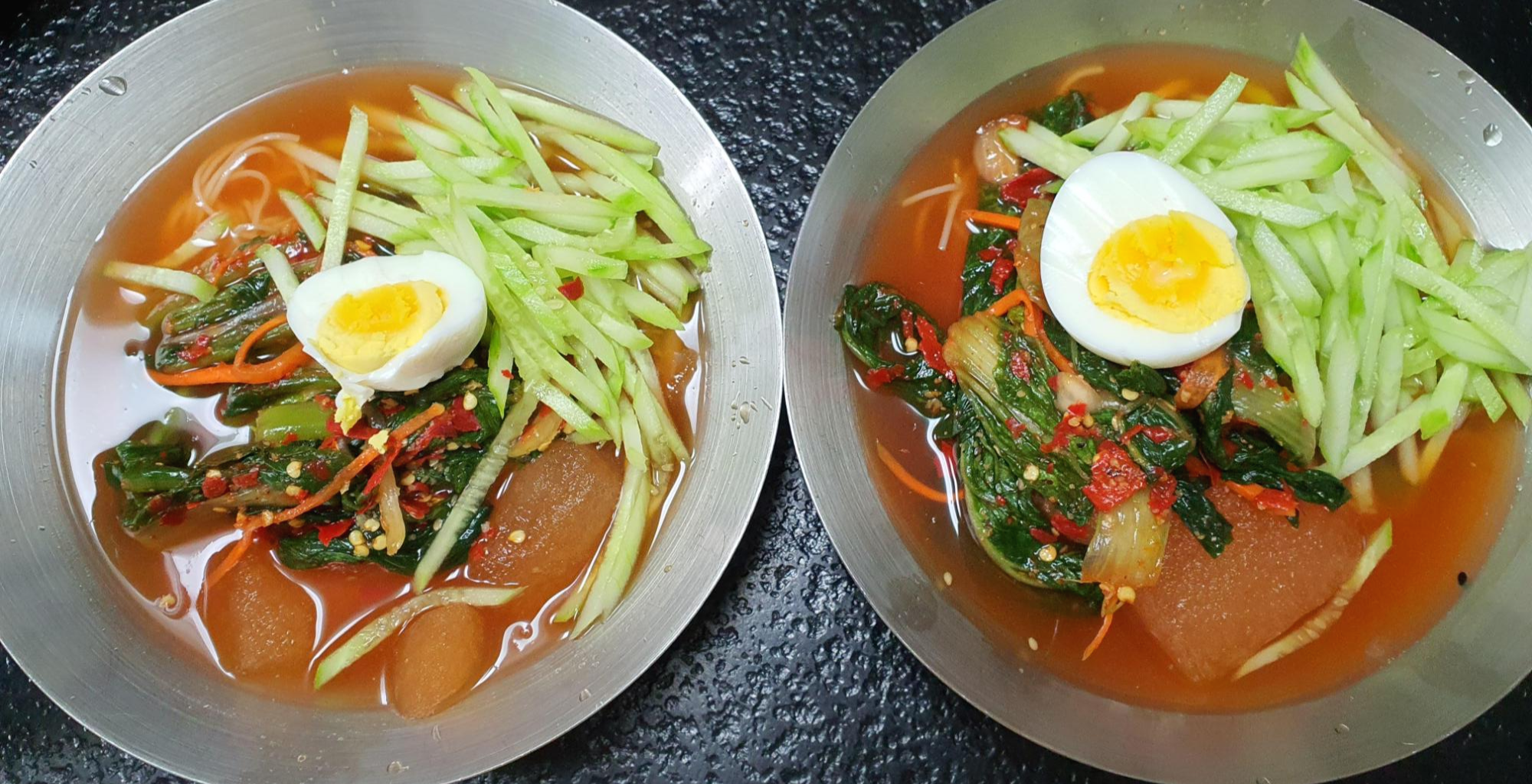 잘헹궈준 냉면 면을 먹을 만큼 담고..