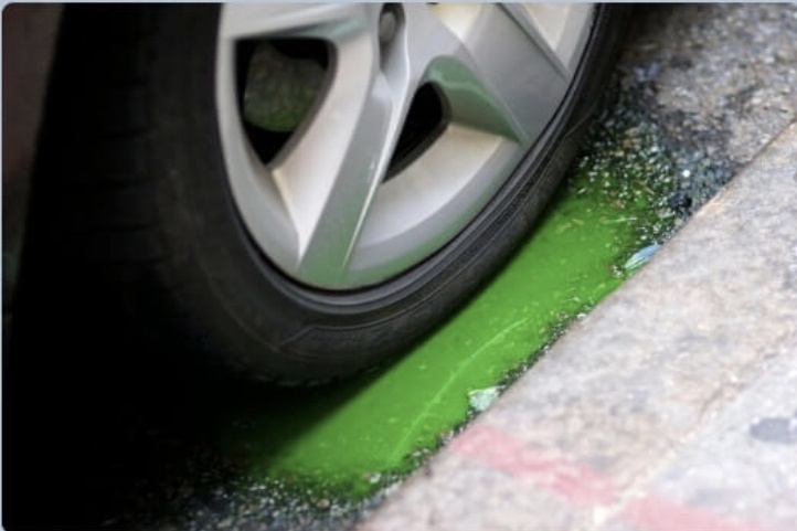 주차를 한 차량 바닥에 아래와 같이 달달한 냄새가 나는 초록색 액체가 흘러나온다면 그건 냉각수 누수 때문이었을 확률이 높다고 합니다.