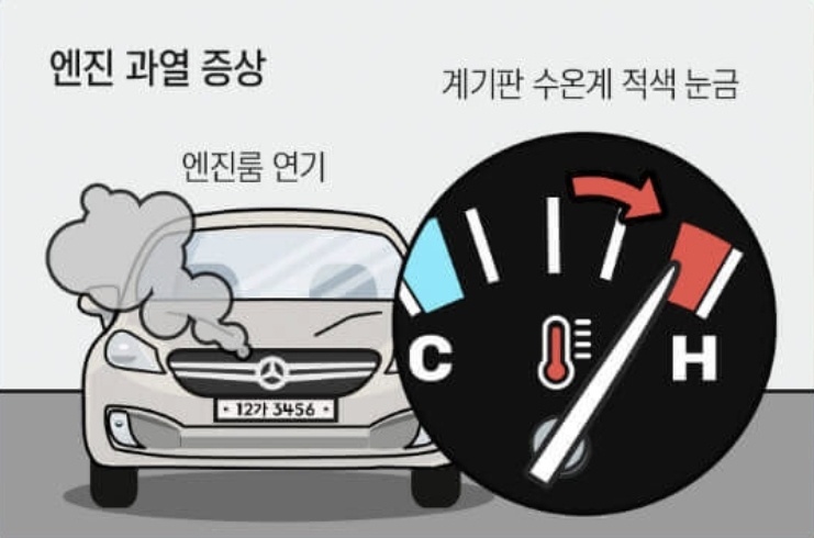 냉각수가 누수되면 냉각수가 제 역할을 할 수 없고 엔진 과열이나 차량 화재의 원인이 되기 때문에 빠른 시일 내에 정비소에 방문해야 합니다.
