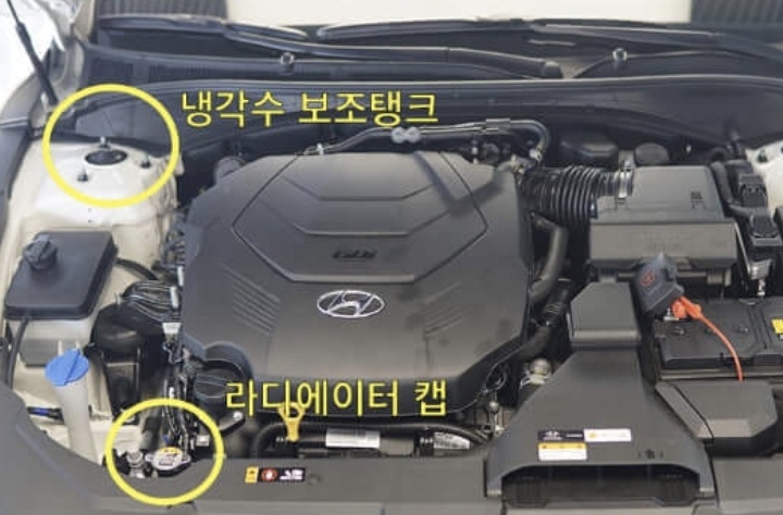 냉각수는 '라디에이터 캡'과 '냉각수 보조탱크'를 통해 점검 및 보충할 수 있습니다.