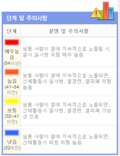 여름철 열에 지속적으로 노출이 되면 열사병, 열경련, 열피폐 등 위험할 수 있으니 단계별 열지수를 잘 확인해야 합니다.