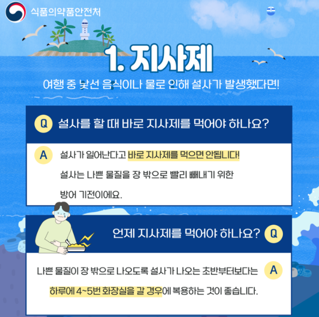 설사가 일어난다고 바로 지사제 먹으면 안 됩니다.