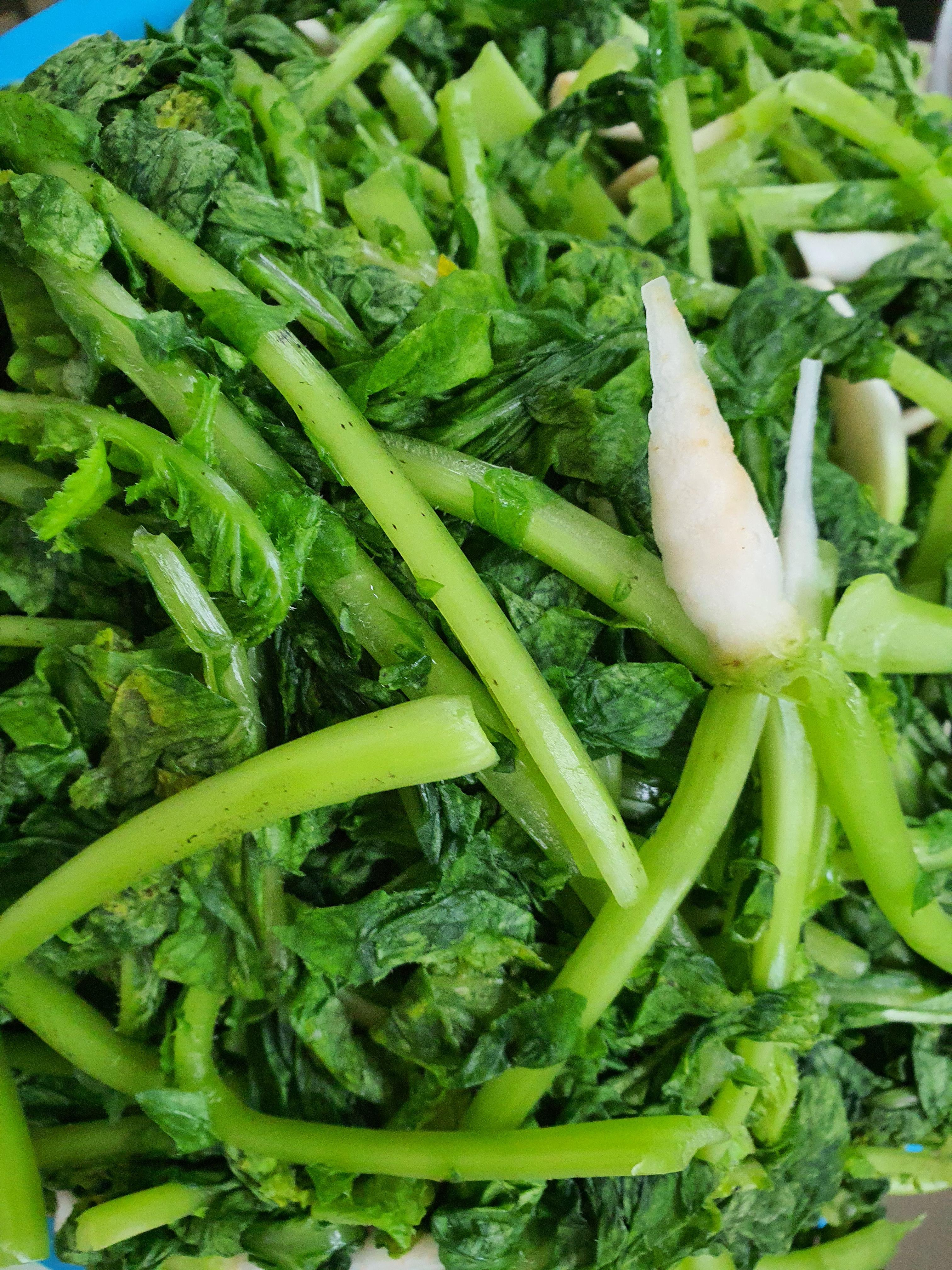 2. 씻은 열무 굵은 소금물에 절이기 (열무가 살짝 잠길 정도의 물에 담가 굵은 소금을 넣어 절입니다. 보통은 1시간이면 절여지는데.. 상황에 따라 다르니 열무를 휘여봤을때 부러지지 않고 휘면 잘 절여졌다고 볼 수 있습니다.)