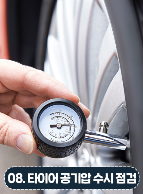 타이어 공기압이 20% 부족하면 연료는 약 2~3% 더 소비되며 타이어의 수명은 약 30% 감소되는데, 적정 공기압인 30psi를 유지하면 최대 10% 정도의 연료를 절약할 수 있다고 합니다. 도 계절별로 타이어 압력이 변화되니 수시 점검하는 것이 좋습니다.