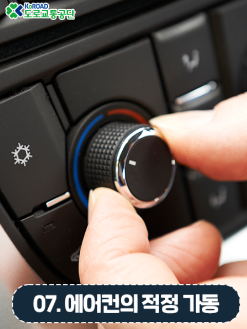 주행 중 에어컨을 가동하면 최대 20% 정도 연료 소비가 증가되므로 오르막길이나 체증이 심한 시내도로 주행 시 가능한 에어컨 사용을 줄이는 것이 좋습니다.