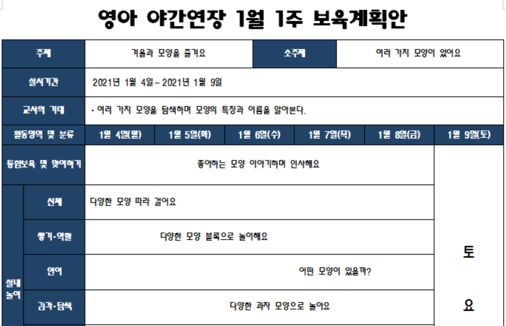 연장반 보육일지와 연장반 보육계획안 그리고, 야간연장반 보육계획안도 함께 올려봅니다.
