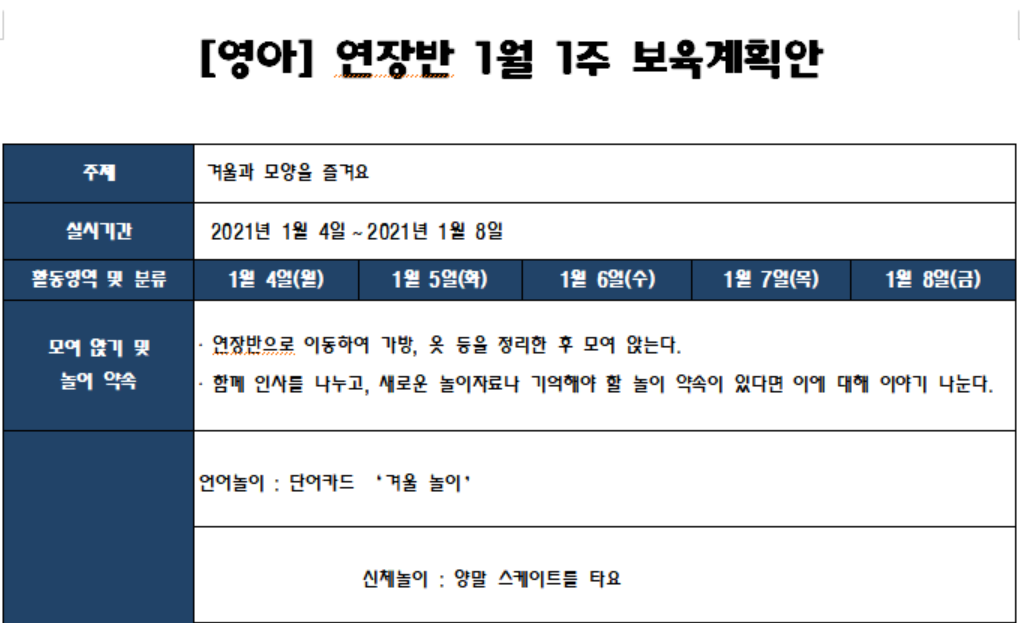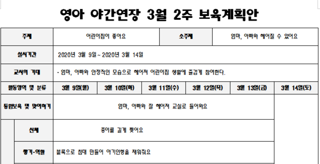연장반 보육일지와 연장반 보육계획안 그리고, 야간연장반 보육계획안도 함께 올려봅니다.
