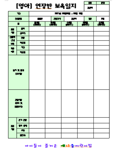 영아 연장반 보육일지 서식 다운받기