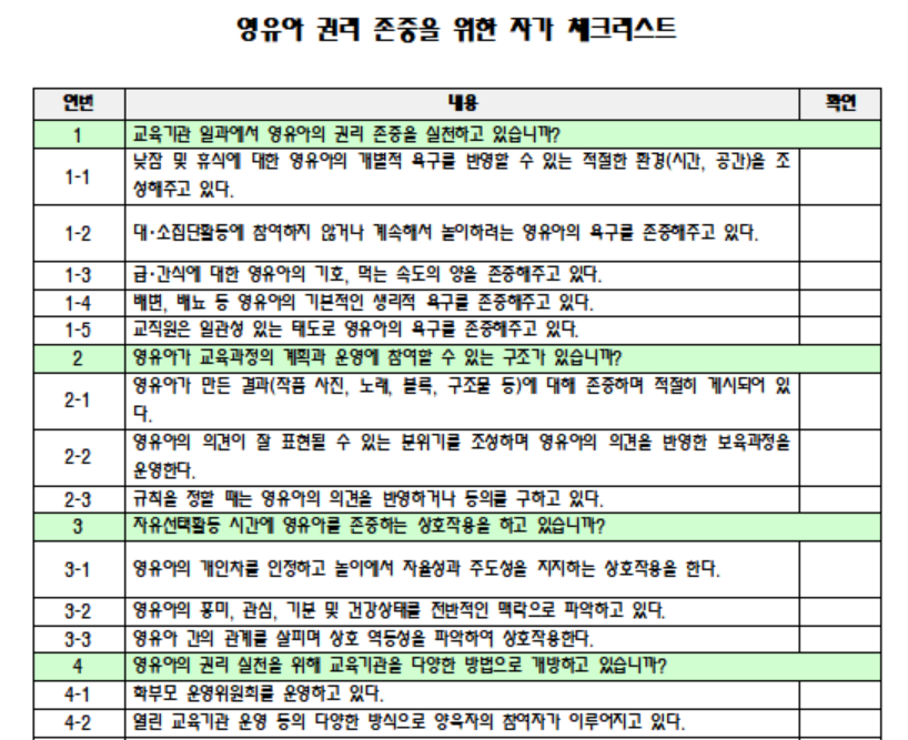 영유아 권리 존중을 위한 자가 체크리스트