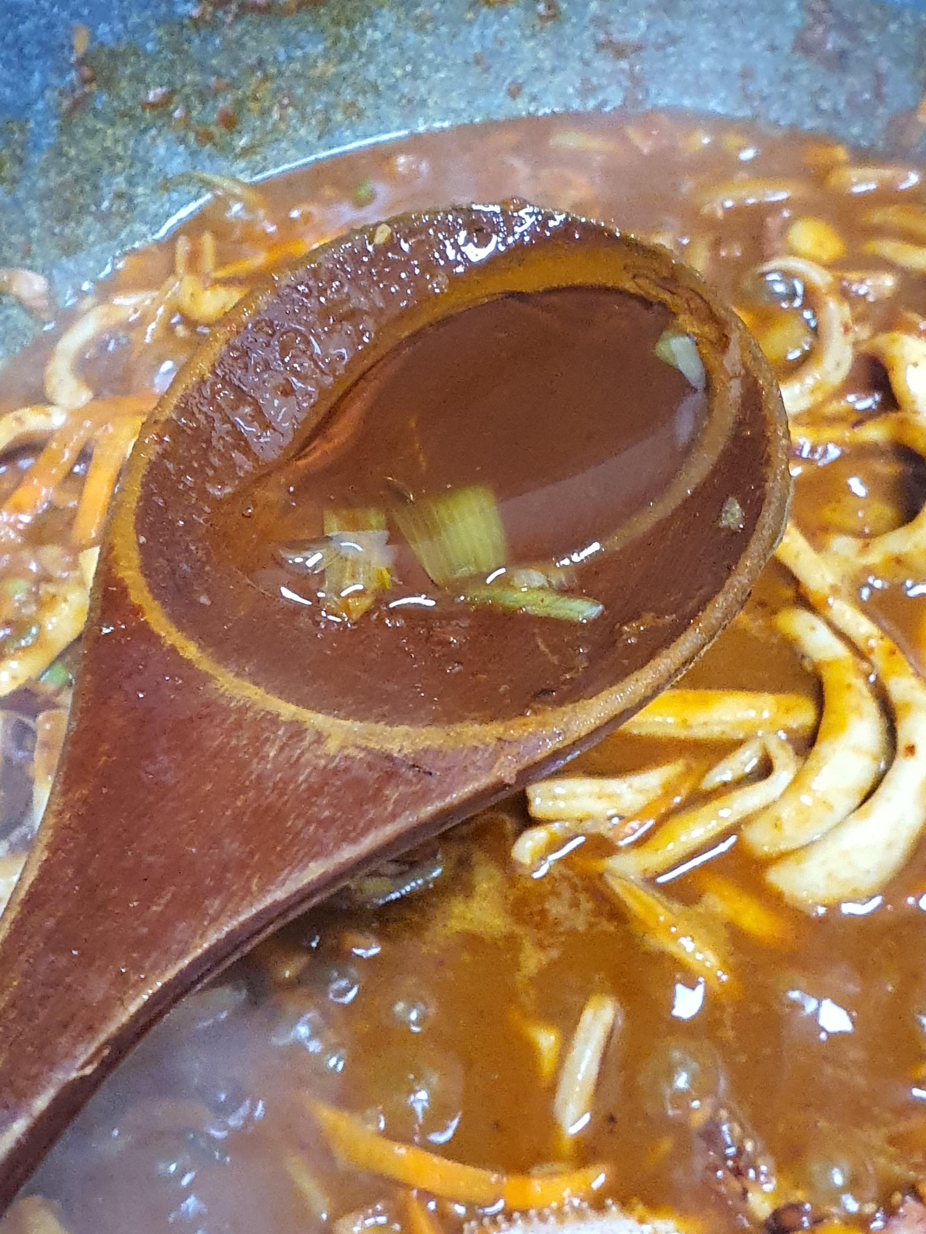 7. 오징어가 익어가면 조청 1스푼, 치킨스톡 1스푼을 넣고 마지막으로 볶아주면 끝 ^^