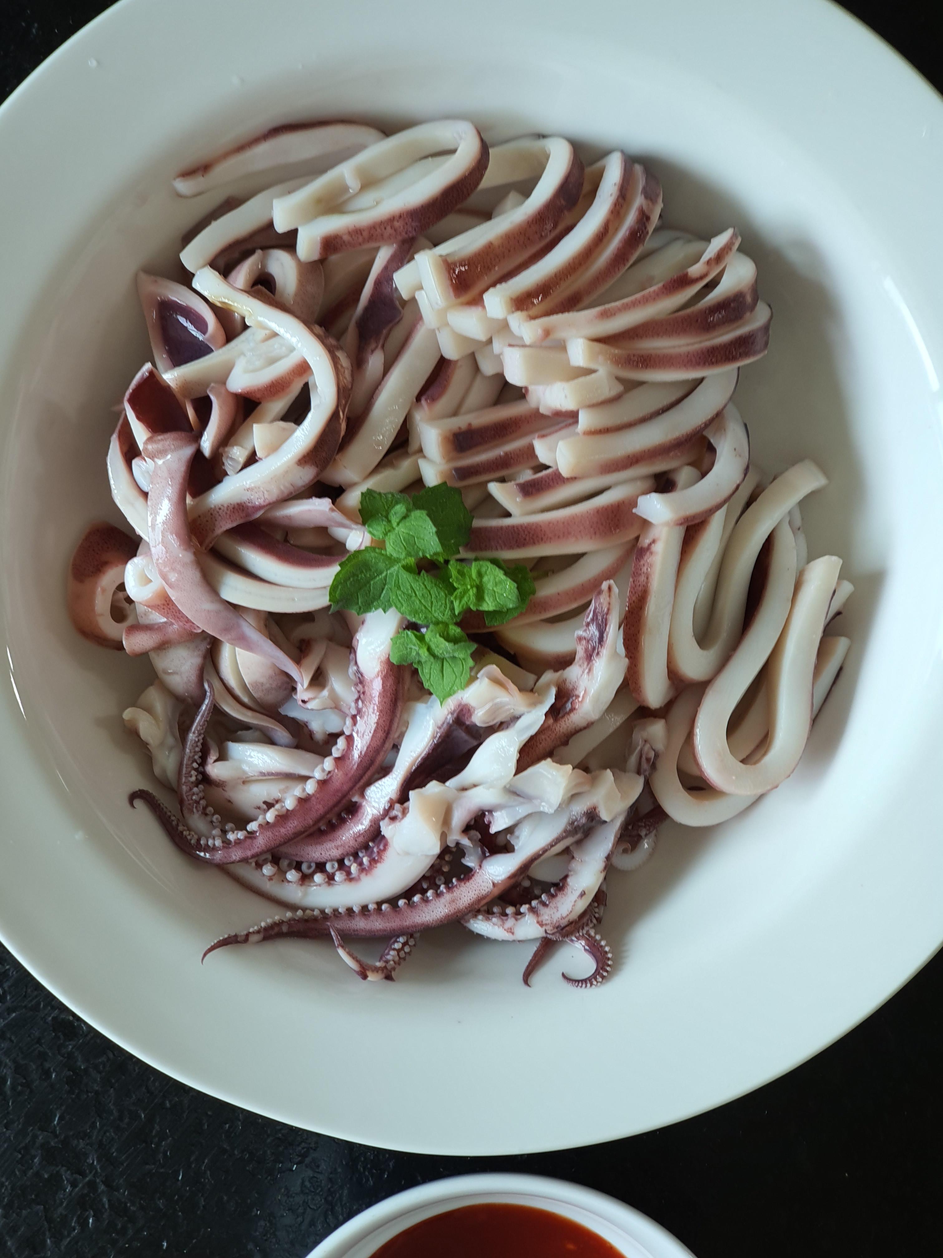 2. 오징어를 깨끗이 씻고 손질해 놓습니다.