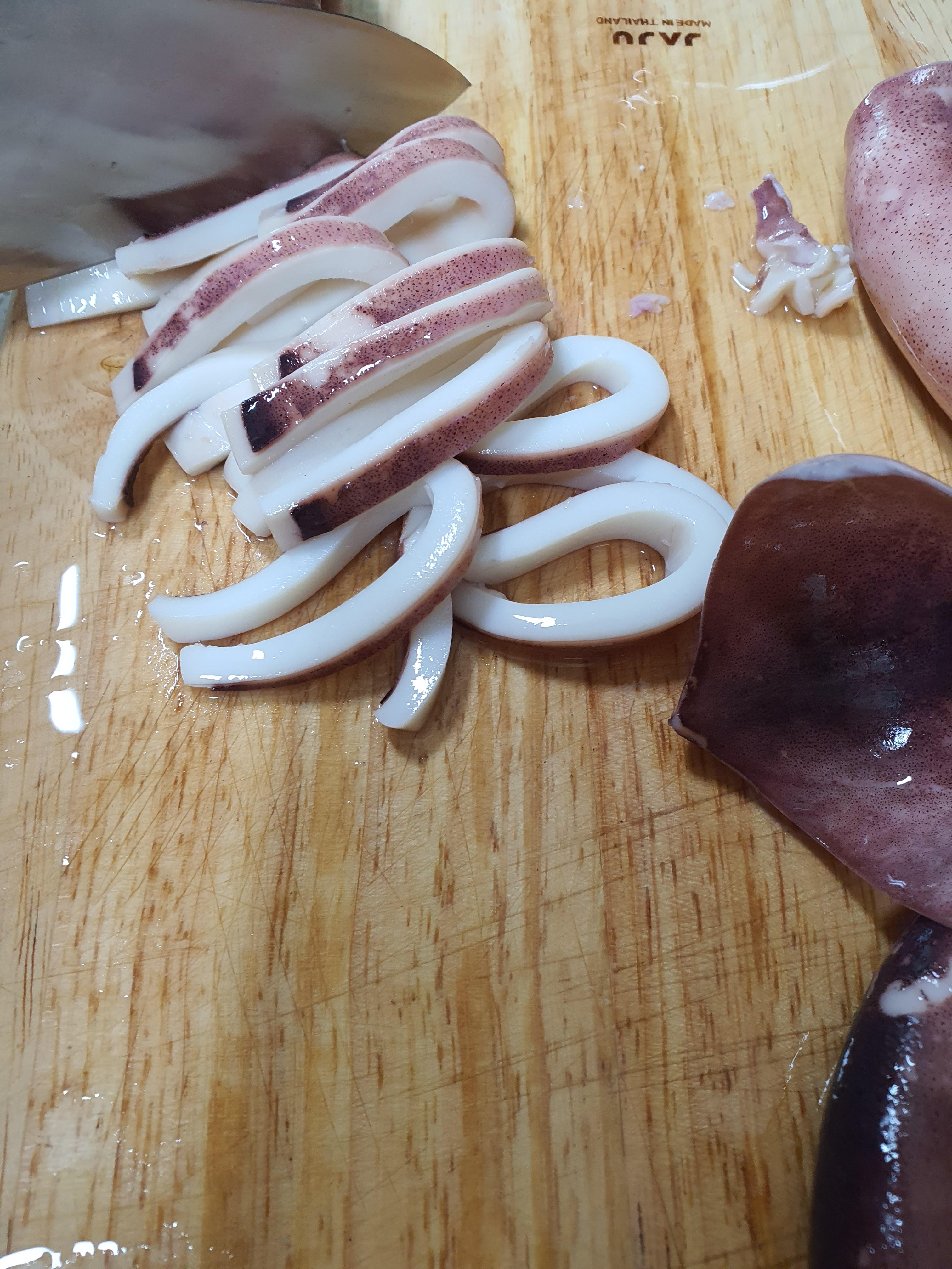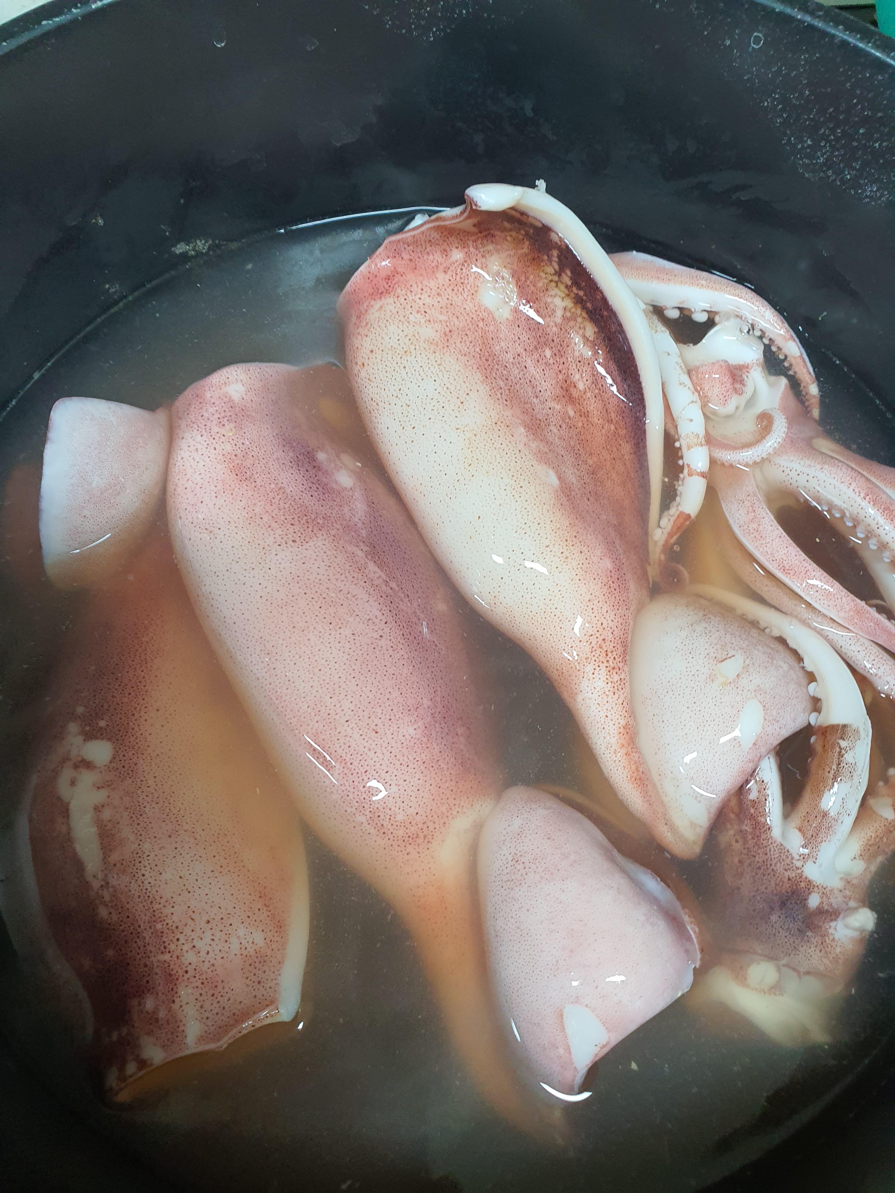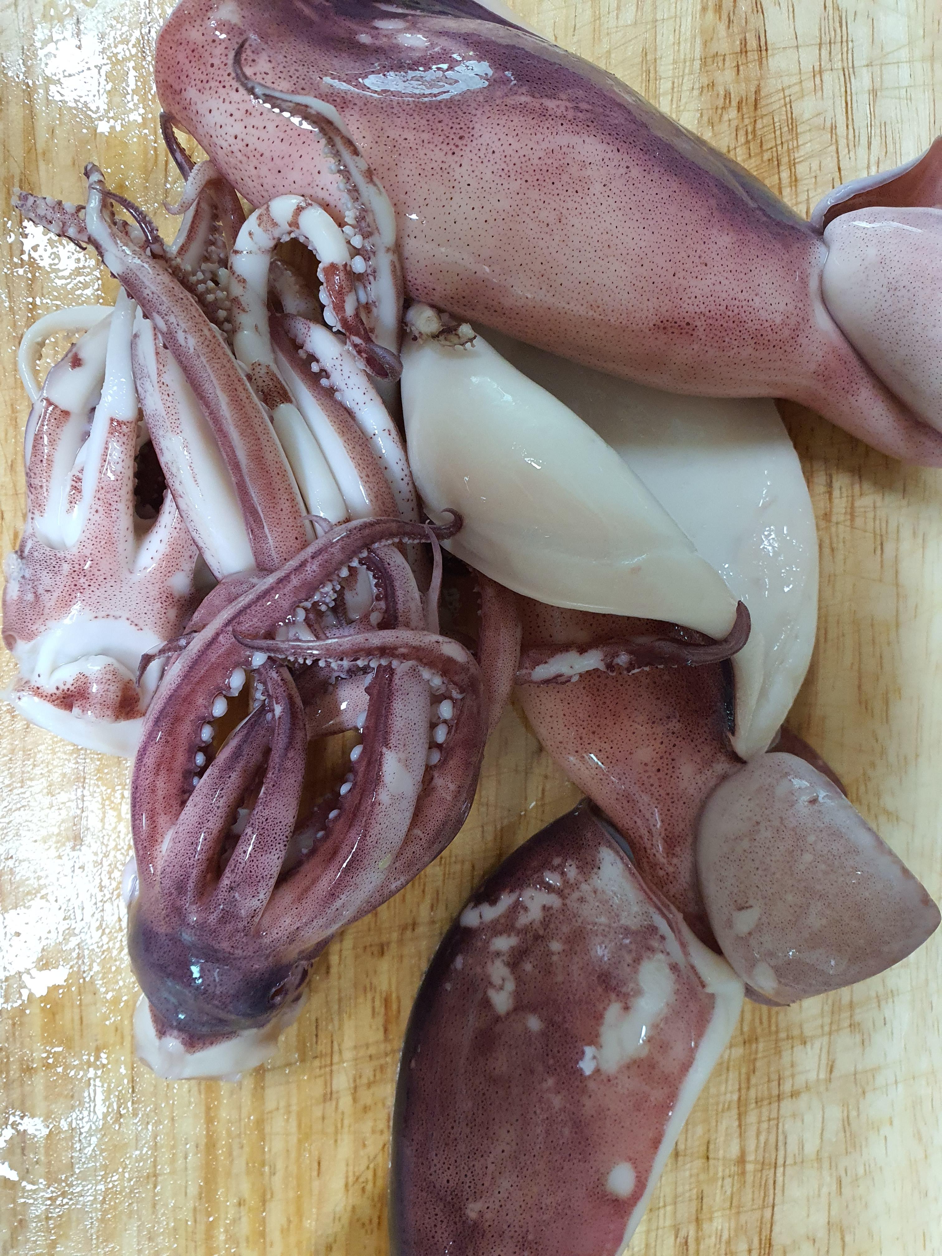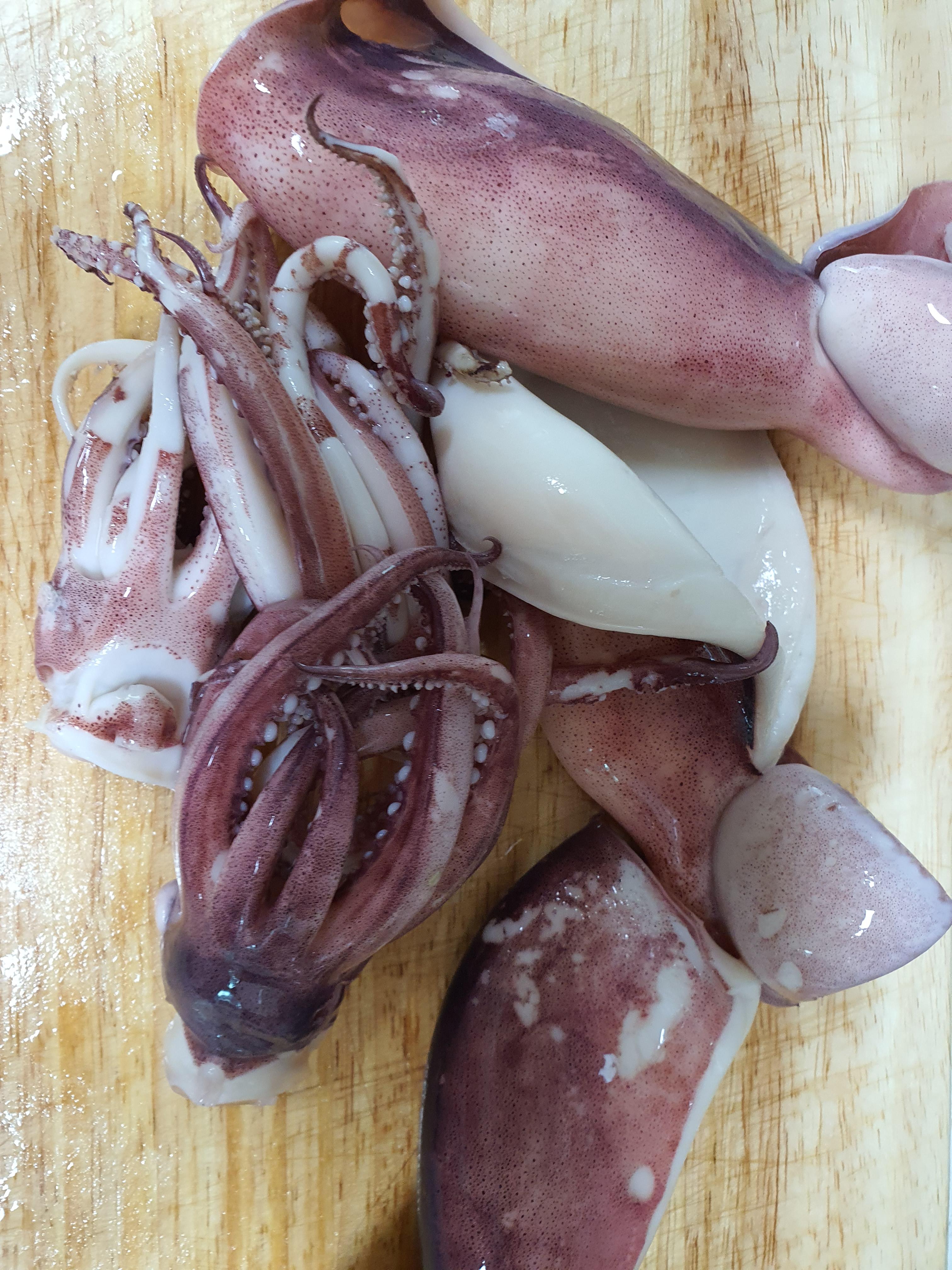 2. 오징어를 깨끗이 씻고 손질해 놓습니다.