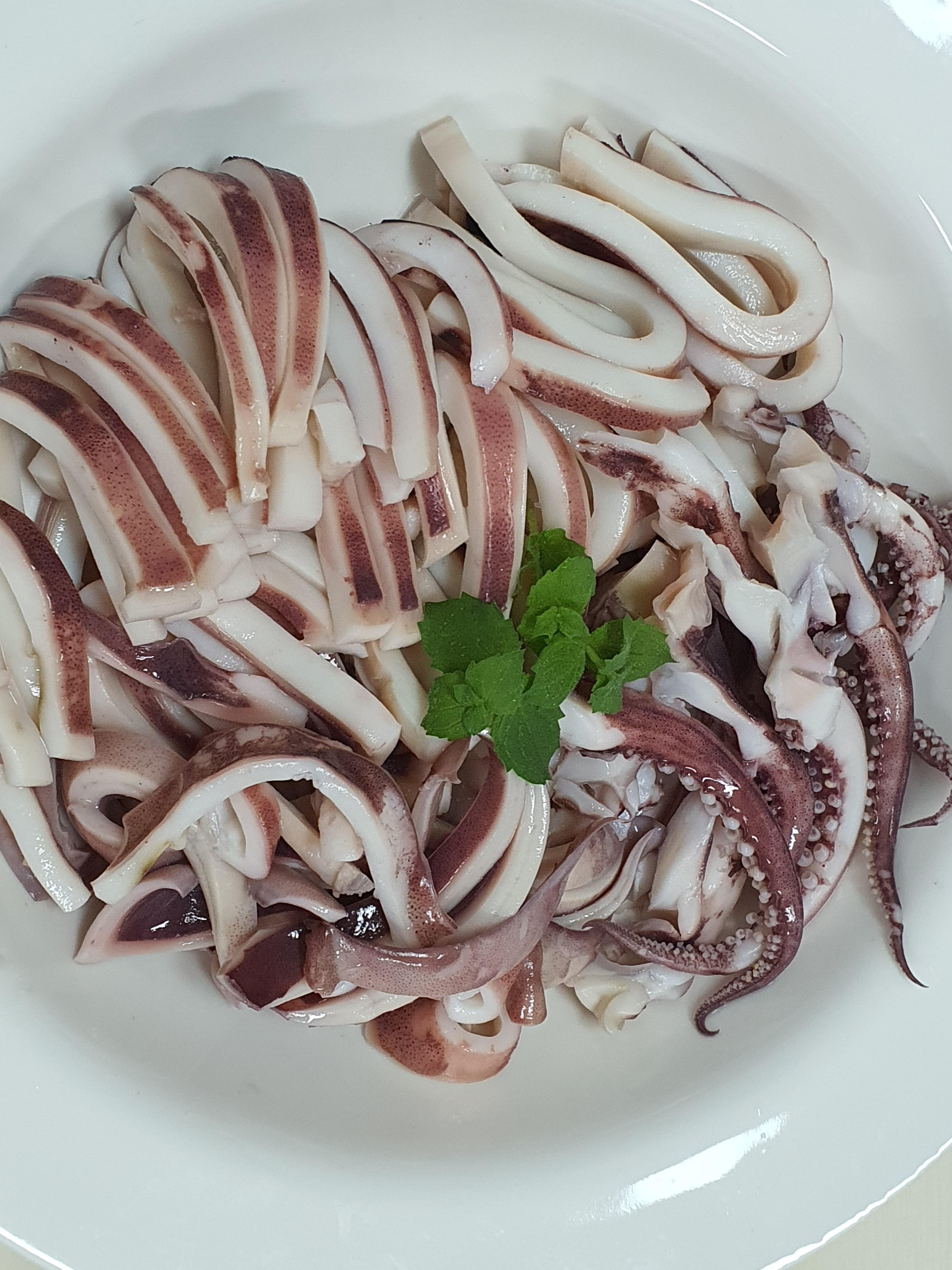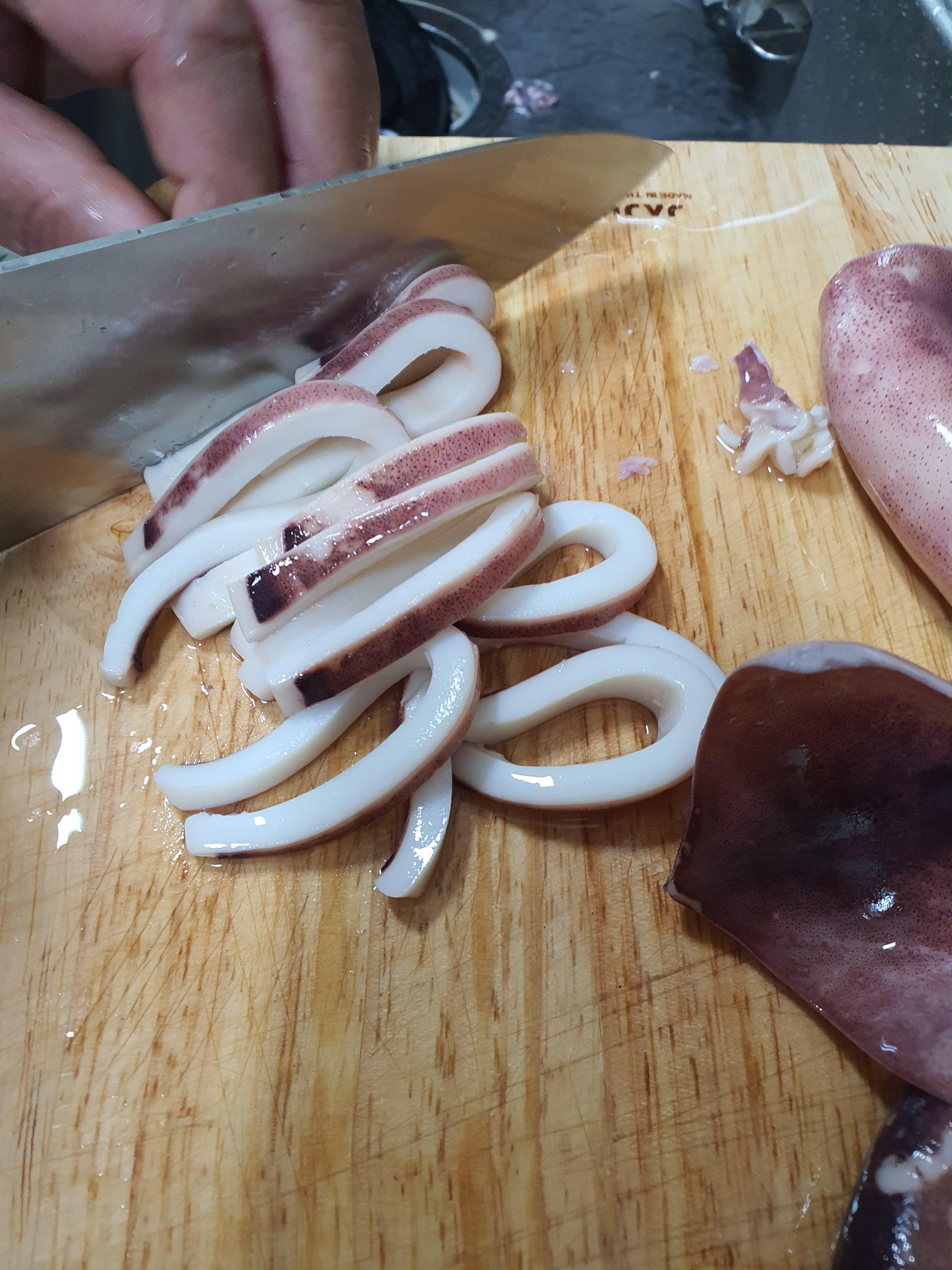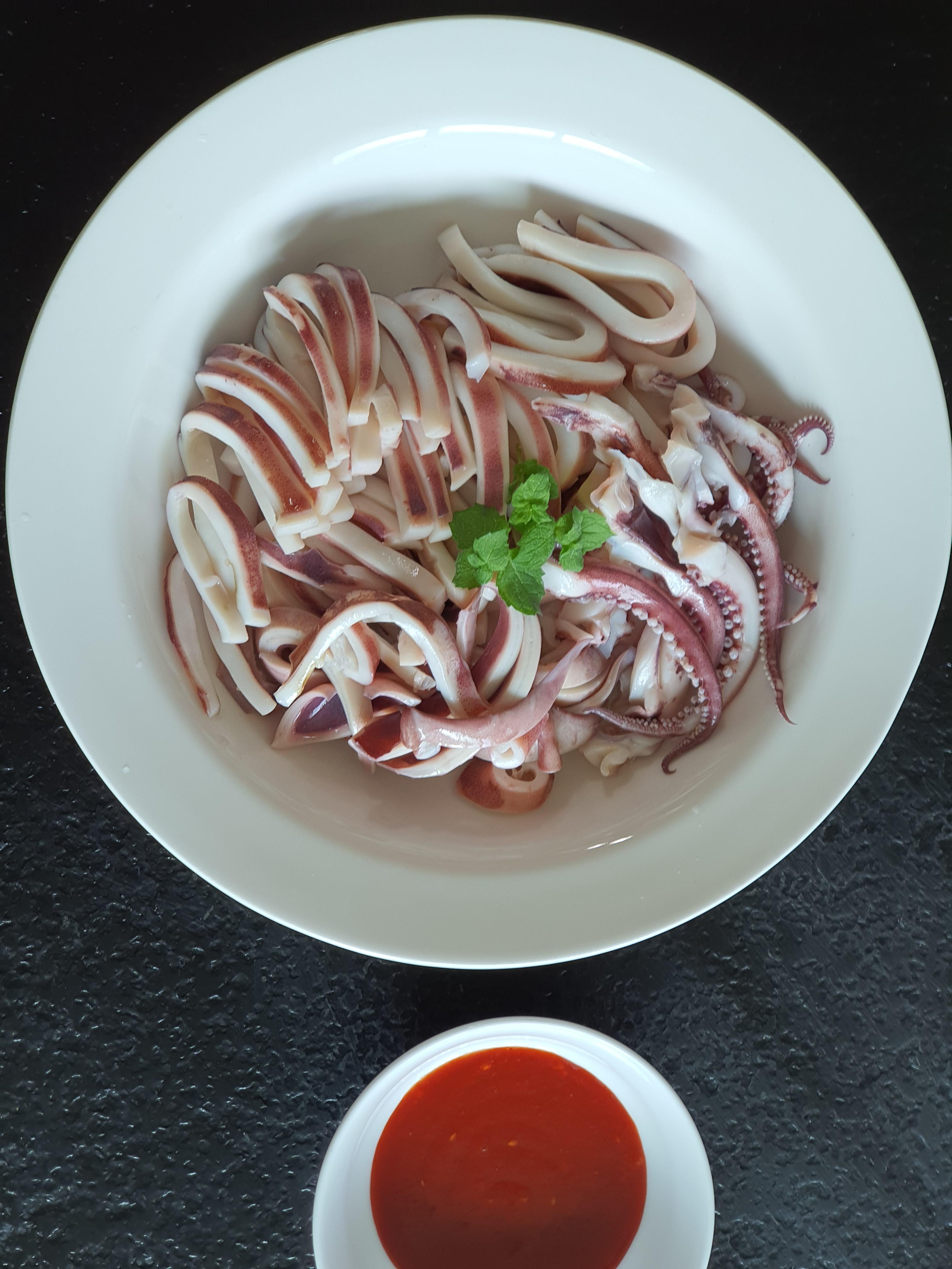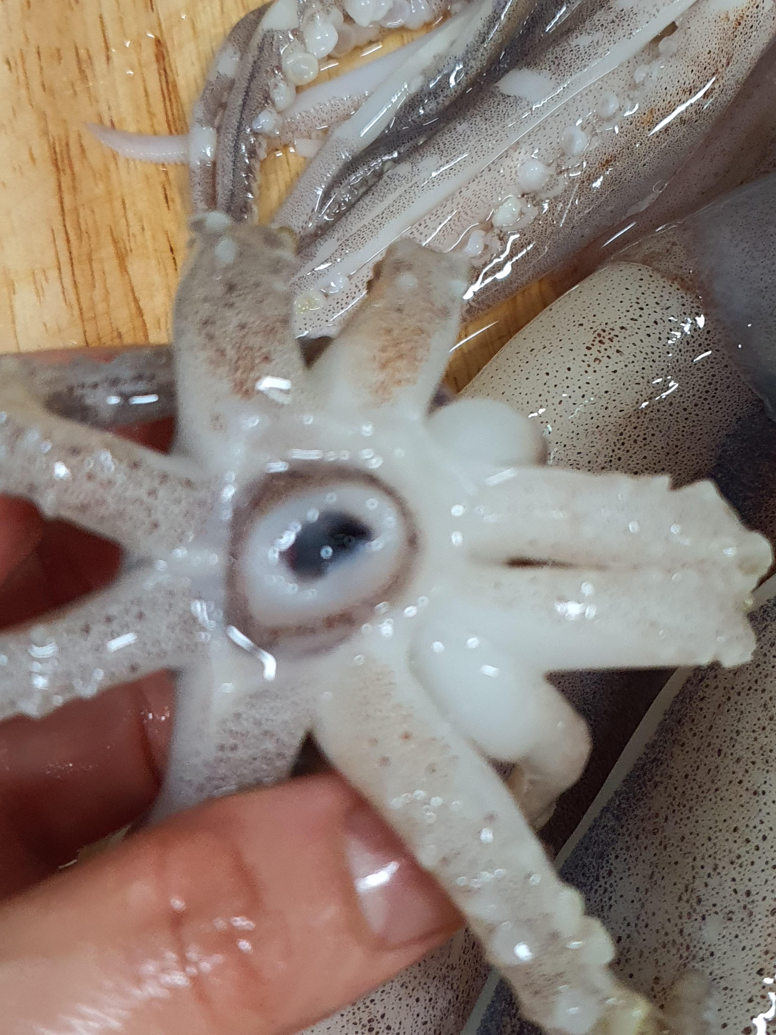 2. 오징어를 깨끗이 씻고 손질해 놓습니다.