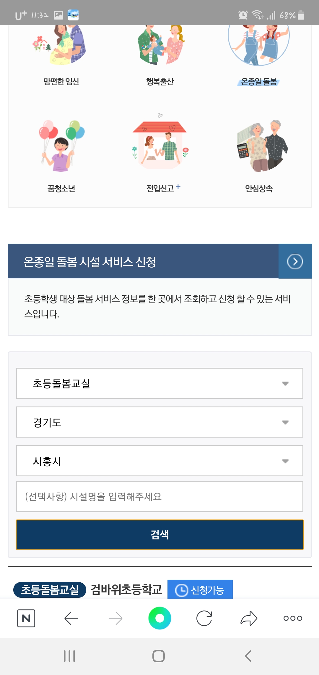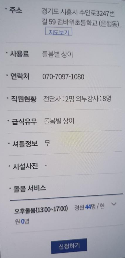 저는 그 중 초등돌봄교실을 클릭해보았습니다.