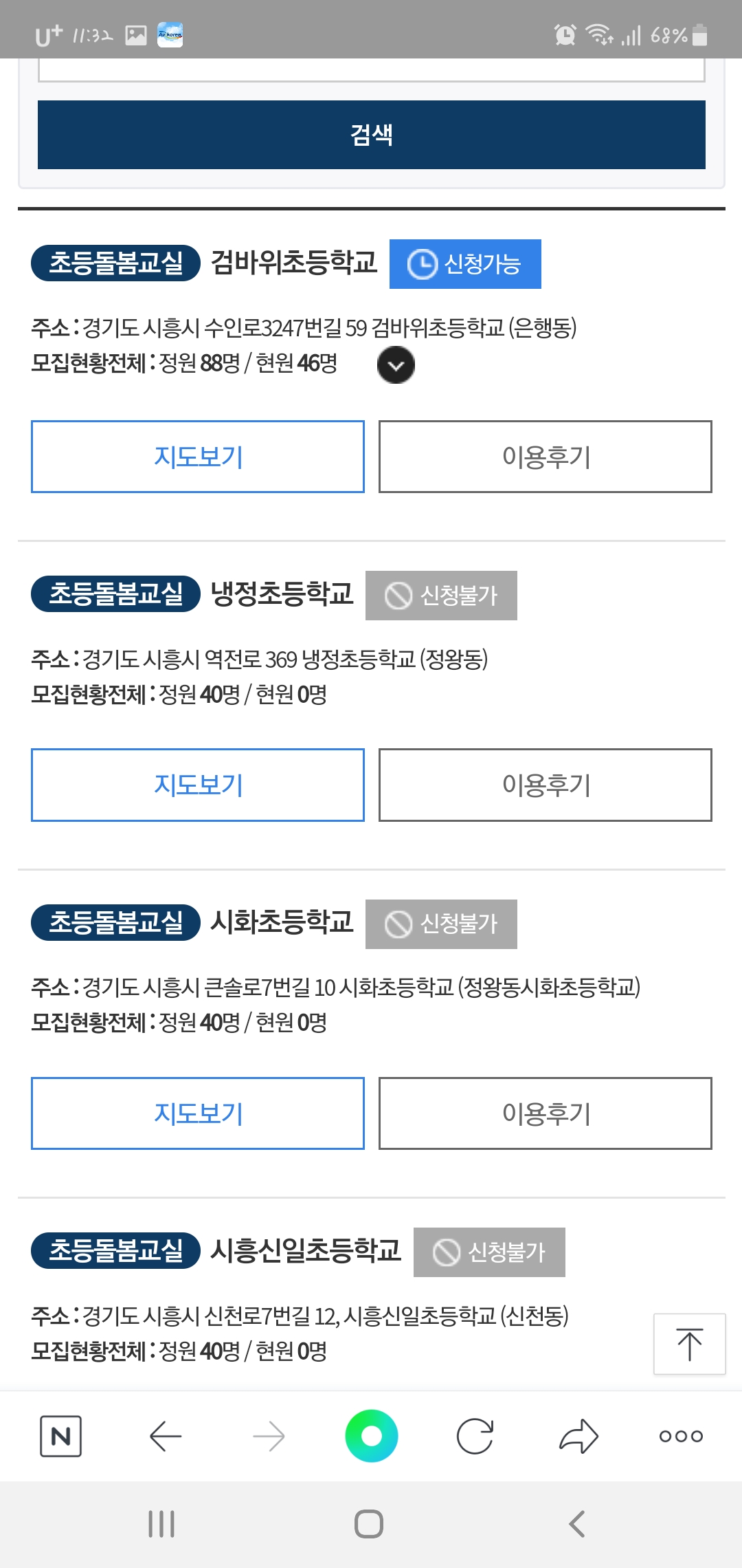 클릭하니 검바위초등학교만 신청이 가능한걸로 보여집니다.