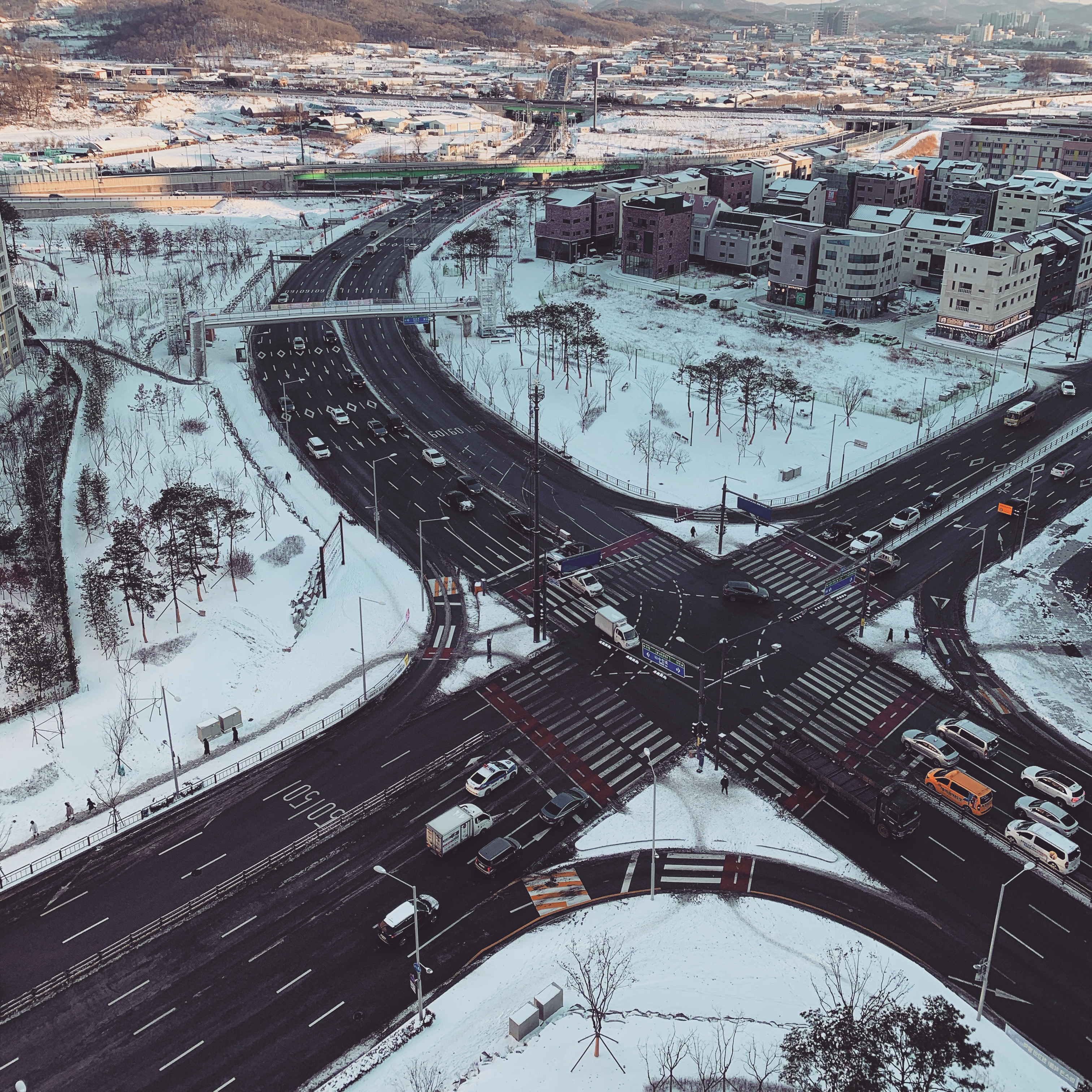 사진 속은 큰 도로라 눈이 녹아보이지만 보이지않는 곳곳에는 여전히 블랙아이스로 위험한 도로 속에서 위험한 주행을 하고 있습니다. 또, 음지의 작은 골목은 여전히 눈이 쌓여 있고 쌓인 눈이 얼어서 더욱 위험한 상황입니다.