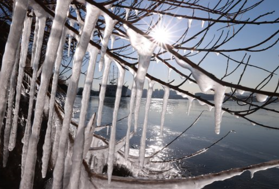 또, 강원 춘천 소양강과 북한강은 빙판을 이뤘고, 철원 한탄강 하류의 직탕폭포는 빙벽으로 변했다고 합니다.