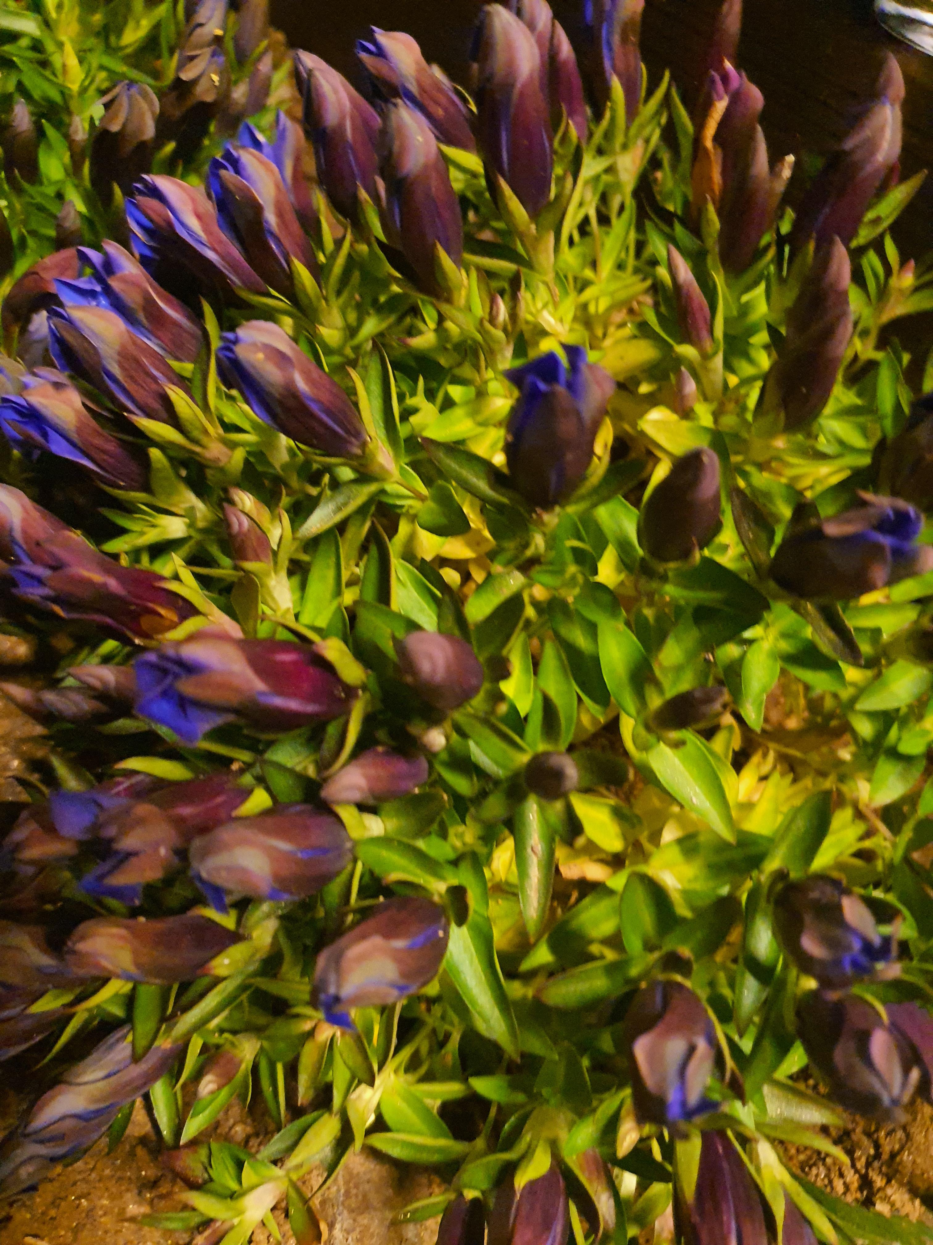 용담은 꽃이 많이 달리면 옆으로 처지는 경향이 많이 나타나고 바람에도 약해 쉽게 쓰러집니다. 하지만 쓰러진 잎과 잎 사이에서 꽃이 많이 피기 때문에 줄기가 상했다고 해서 끊어내서는 안됩니다.