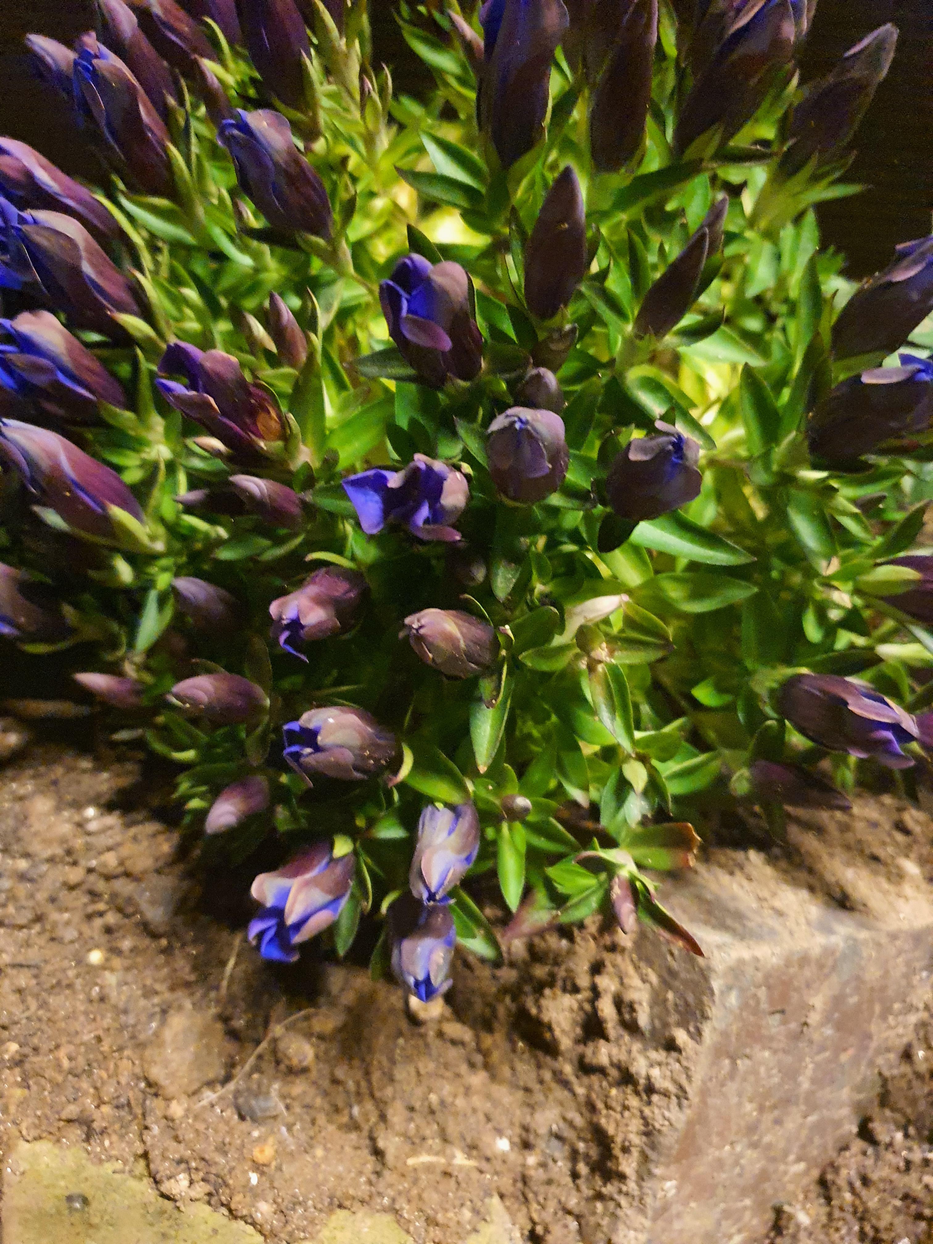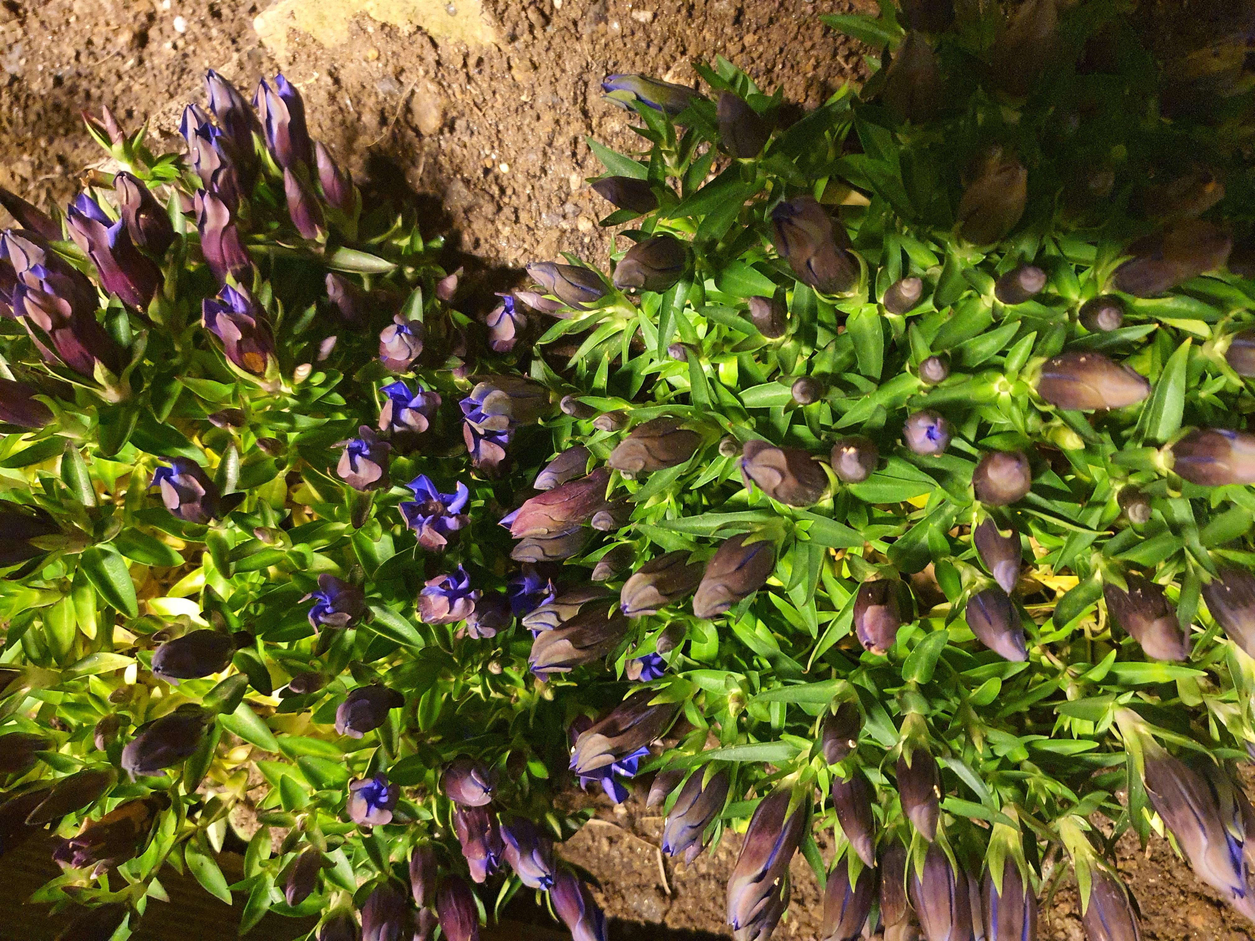 용담은 꽃이 많이 달리면 옆으로 처지는 경향이 많이 나타나고 바람에도 약해 쉽게 쓰러집니다. 하지만 쓰러진 잎과 잎 사이에서 꽃이 많이 피기 때문에 줄기가 상했다고 해서 끊어내서는 안됩니다.