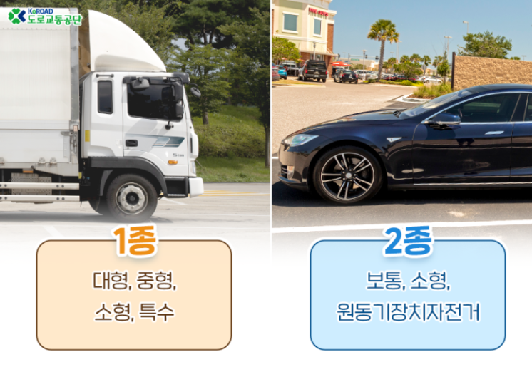 운전면허증은 종류에 따라 운전할 수 있는 자동차가 각각 다르게 나타납니다. 운전면허증은 크게 제1종 운전면허증과 제2종 운전면허증으로 구분됩니다. 제1종 운전면허증은 대형, 보통, 소형, 특수로 나뉘며 제2종 운전면허증은 보통, 소형, 원동기장치자전거로 나뉘게 됩니다.