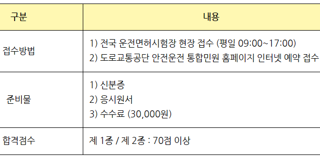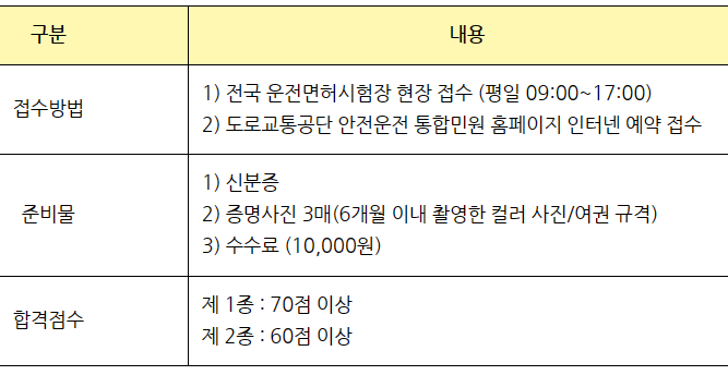 자동차를 운전하기 위해서는 운전면허증은 필수로 취득해야 합니다. 운전면허시험 응시자가 집중되는 겨울철에는 서전 예약이 가득 차 있어 원하는 날짜에 응시하지 못하는 인원들이 많다고 합니다. 특히 수능이 끝난 고등학생들과 방학을 준비하는 대학생들이 운전면허증을 취득하기 위해 모여들기 때문에 운전면허증 취득을 위해서는 사전 예약은 물론 미리 취득 과정을 숙지해야 한다고 합니다. 하지만 운전면허시험을 처음 접하는 이원들은 시험이 어떤 과정으로 진행되는지, 면허증에 따라 어떤 차종을 운전할 수 있는지 잘 모르는 경우가 많습니다.