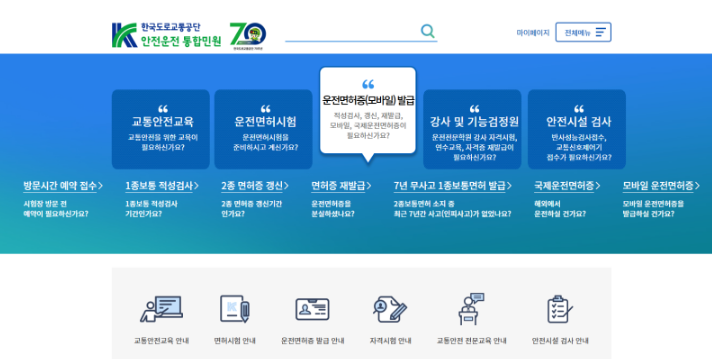 한국도로교통공단 안전운전 통합민원 홈페이지 바로가기