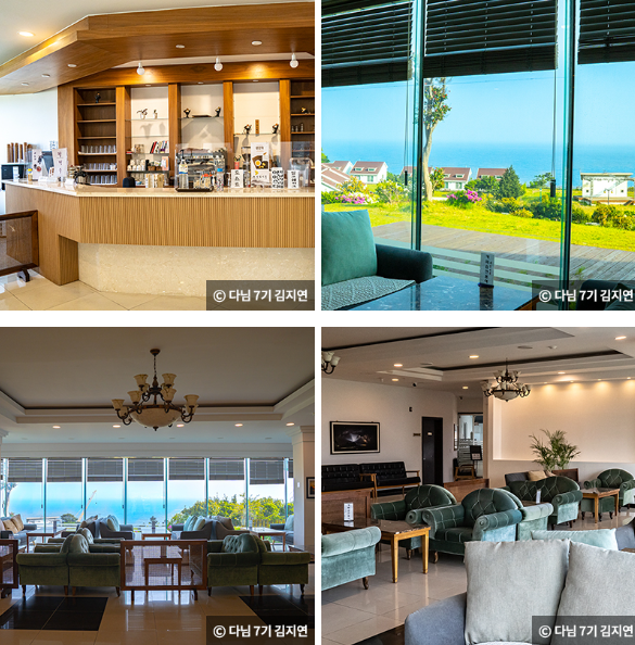 리조트 내에 위치한 카페 브라운 부케는 사동 해수욕장 인근의 산 중턱에 자리 잡아 그림 같은 오션뷰를 감상할 수 있는 곳입니다. 내부에 자리를 잡고 앉아 음료 한 잔을 마시며 푸르른 바다의 절경을 감상할 수 있습니다. 특히 리조트의 주황색 지붕이 어우러져 있어 이색적인 풍경을 만나볼 수 있습니다. 울릉도가 가진 아름다운 자연의 모습을 바라보며 힐링의 시간을 가져보는 것도 좋을 것 같습니다.
