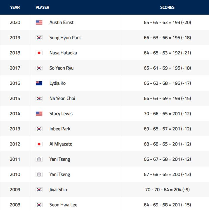2008~2020년 월마트 NW 아칸소 챔피언십 우승 기록